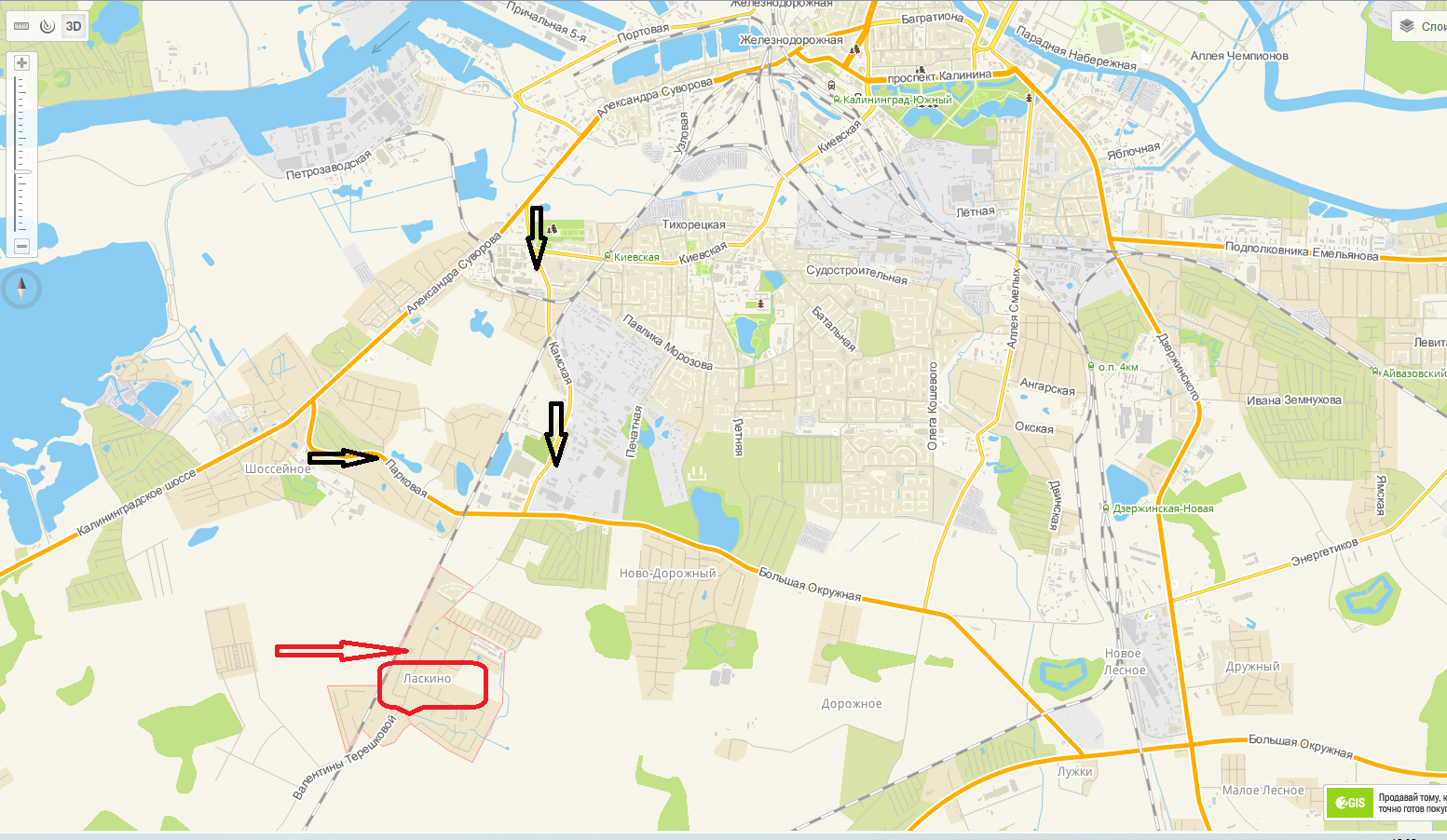 Ориентир ул. Суворова. Камская, Киевская, поселки Лесное, Ново-Дорожный.