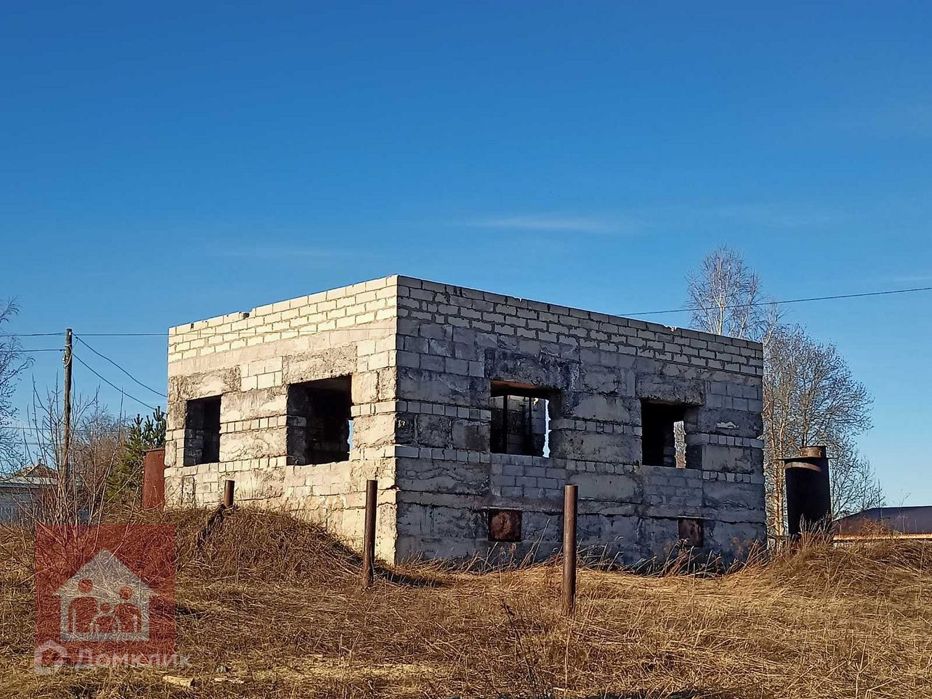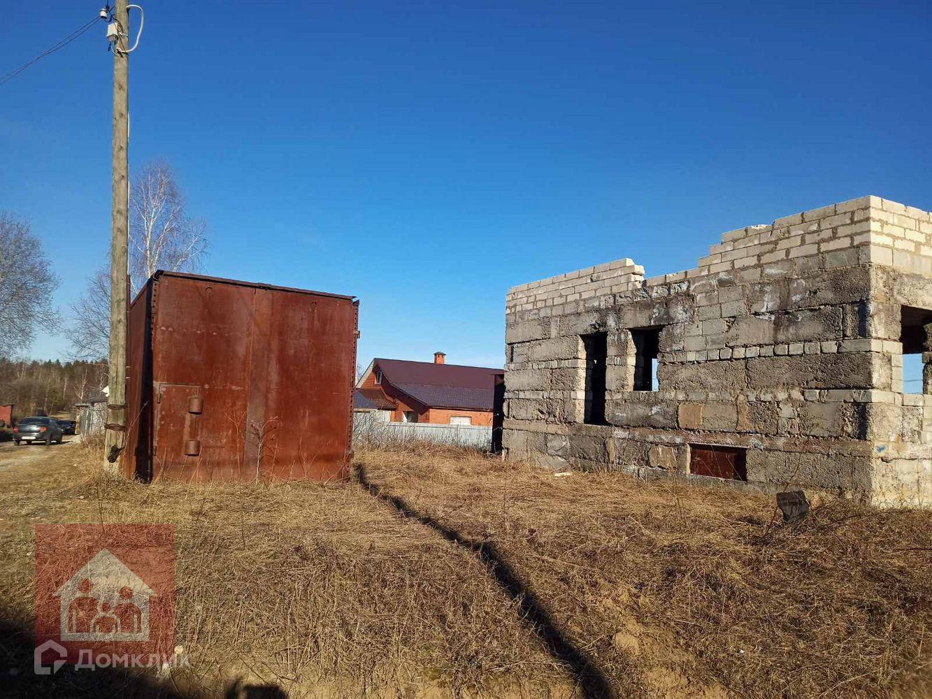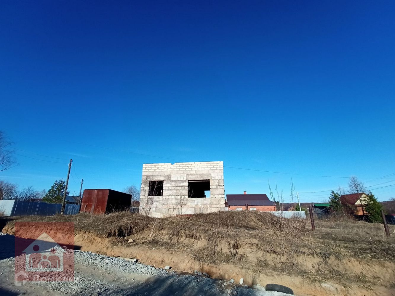 На участке стоит не достроеннй дом 10,3*7,0 (внутренние размеры). 1эт шлакоблок, 2эт газобетон. Так же есть гараж железный.