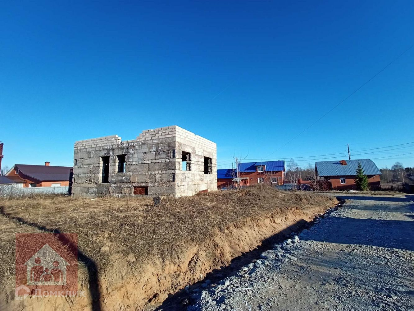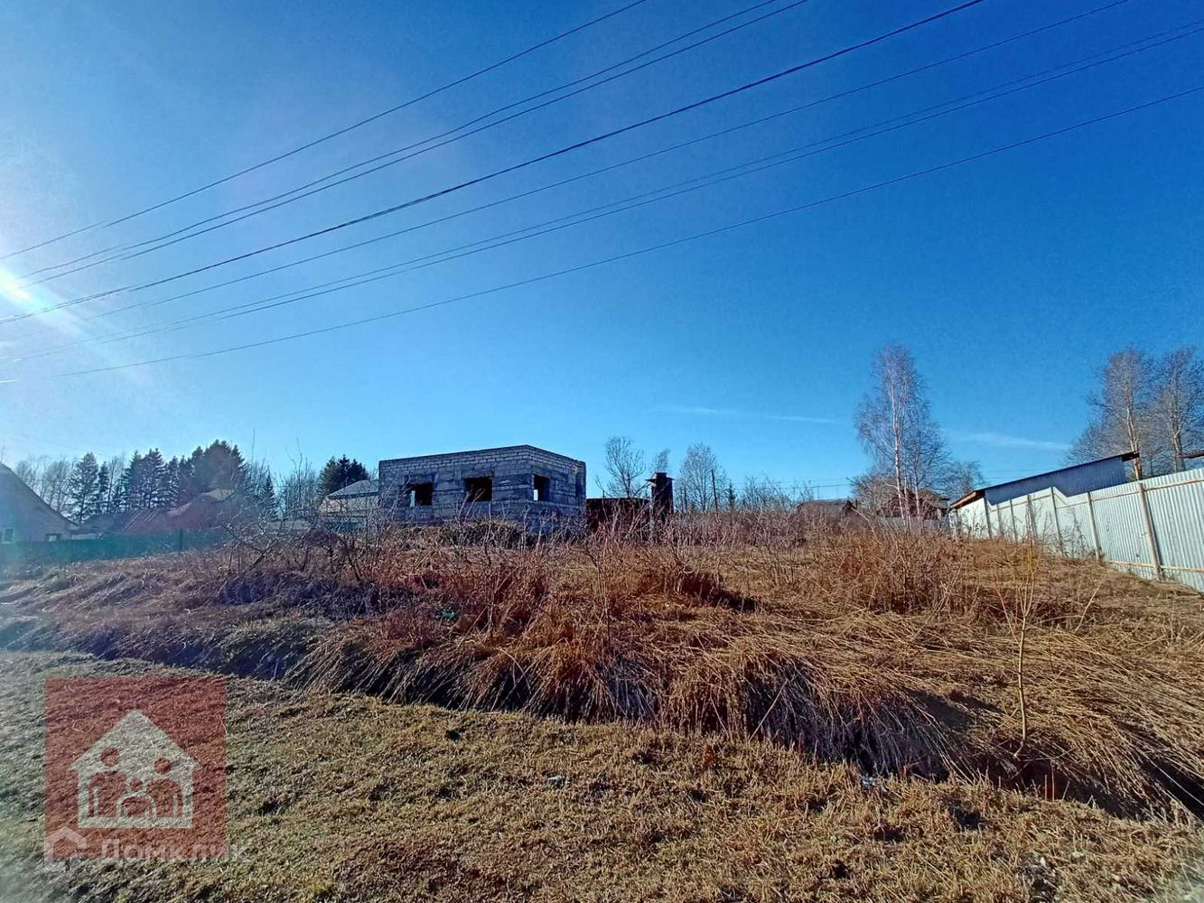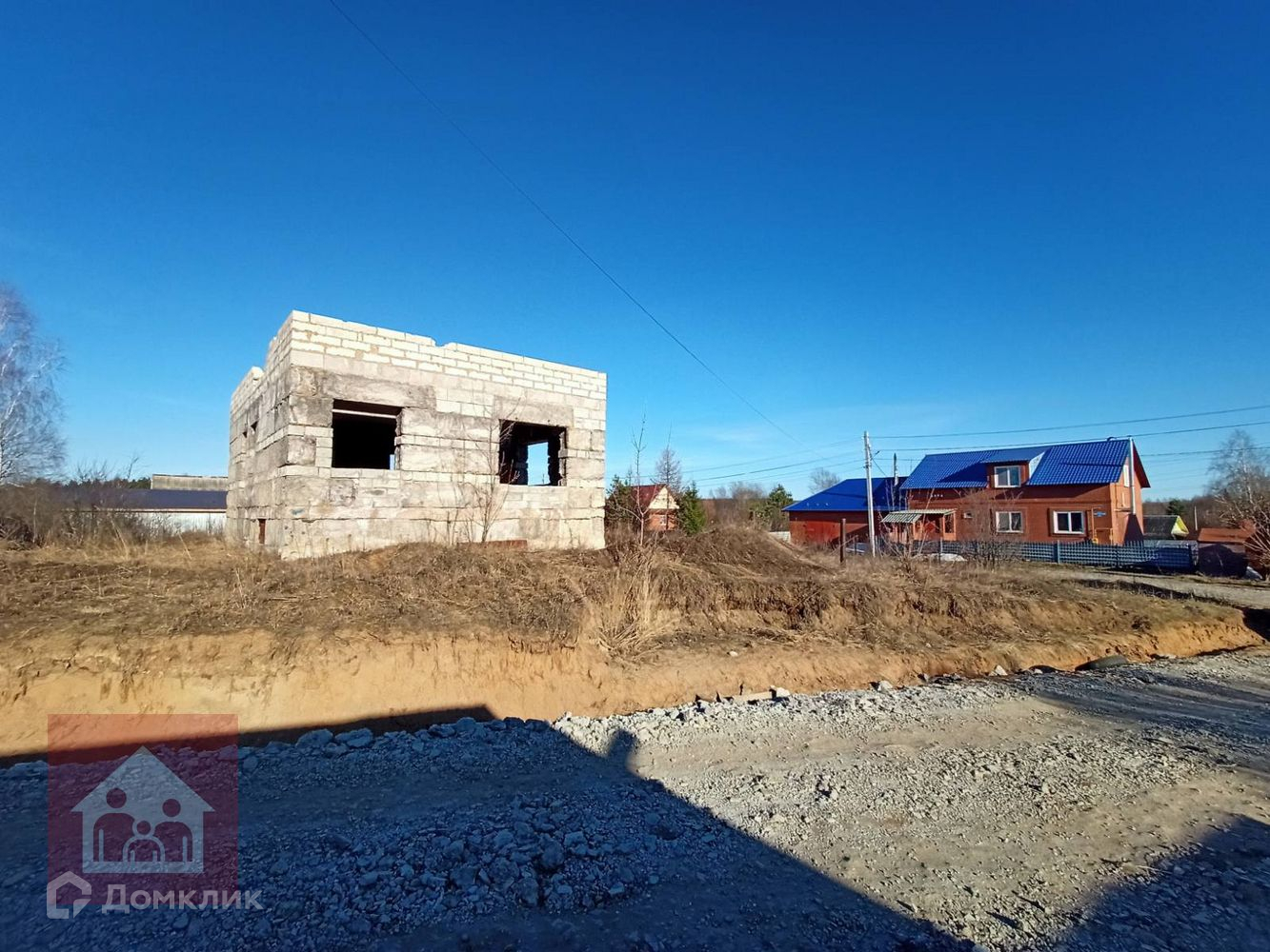 На участке стоит не достроеннй дом 10,3*7,0 (внутренние размеры). 1эт шлакоблок, 2эт газобетон. Так же есть гараж железный.