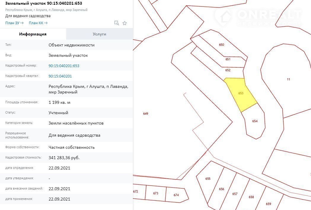Сверху открывается большой обзор на Южное побережье и Алушту. Для разработки проектной документации на земельный участок и обширную прилегающую территорию имеется геодезическая съемка М1:500. Возможна продажа нескольких смежных аналогичных участков. Кадастровые номера 90:15:040201:650; 90:15:040201:651; 90:15:040201:652; 90:15:040201:653;  90:15:040201:654; 90:15:040201:657; 90:15:040201:658; 90:15:040201:659