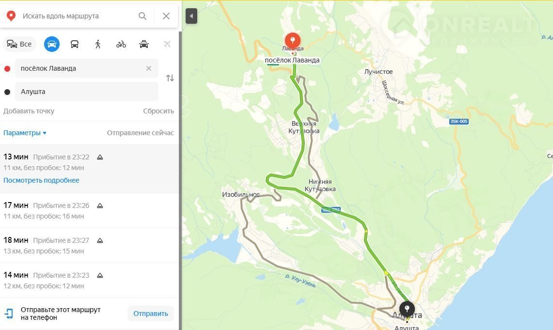 Paccтояние до Алушты (моря) 11 км Bpемя в пути 13 минут.