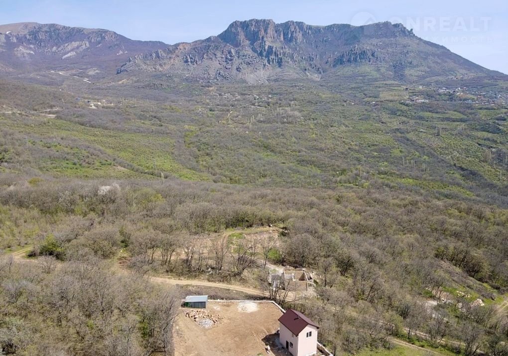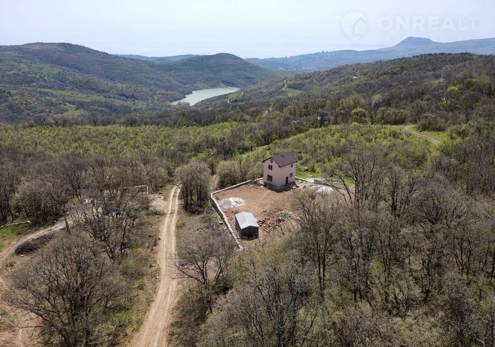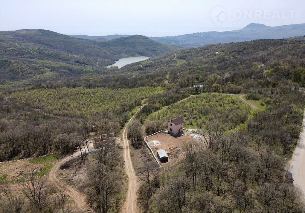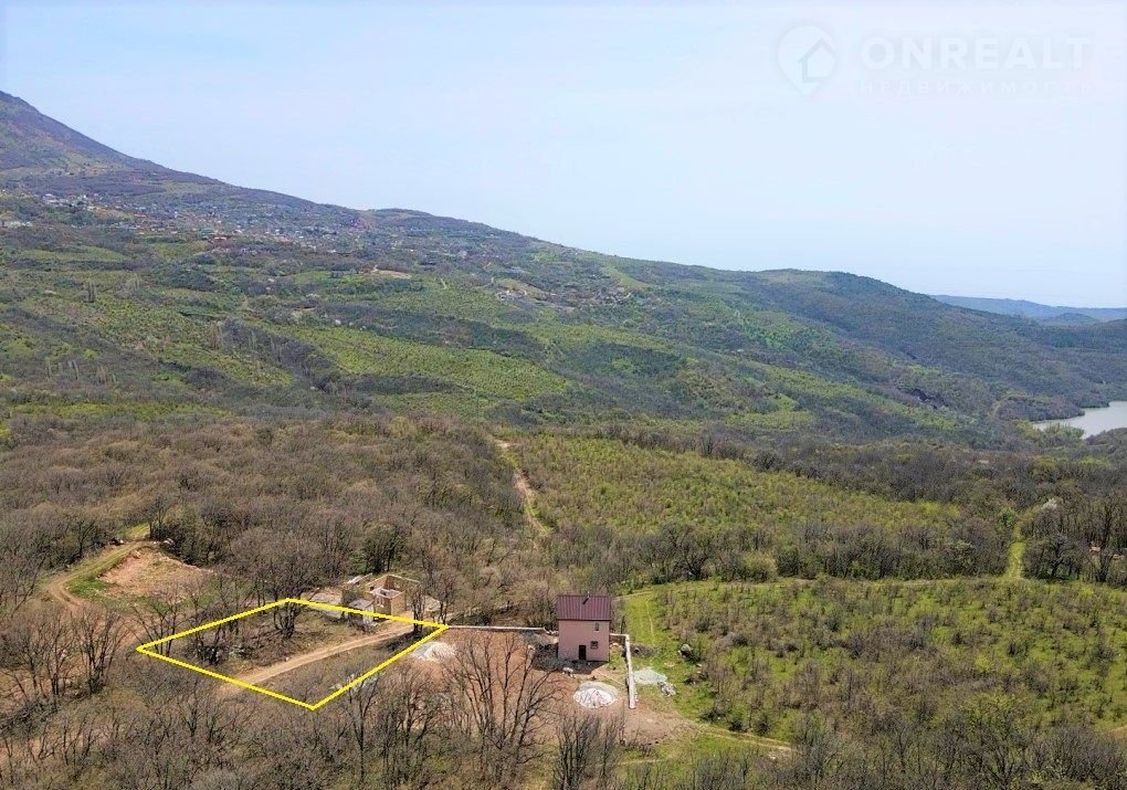 Пробурена водяная скважина.  С участка открывается вид на горы и частично море.