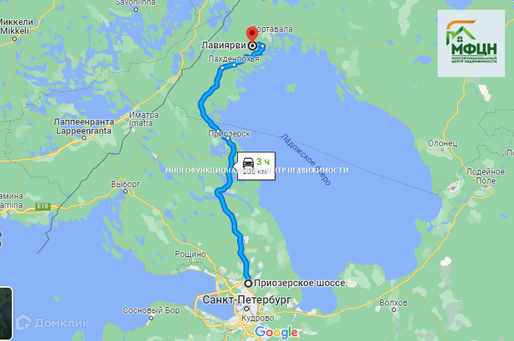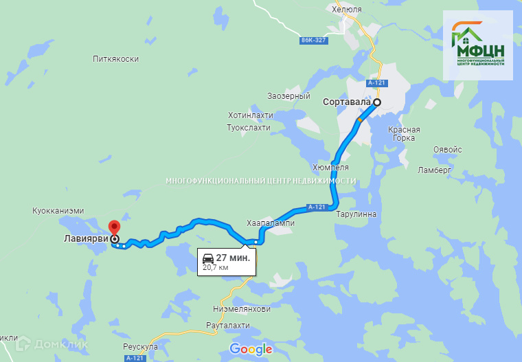 Участок располагается в небольшой деревушке Лавиярви. От поворота с Приозерского шоссе 9 км по отличной отсыпанной грунтовке;