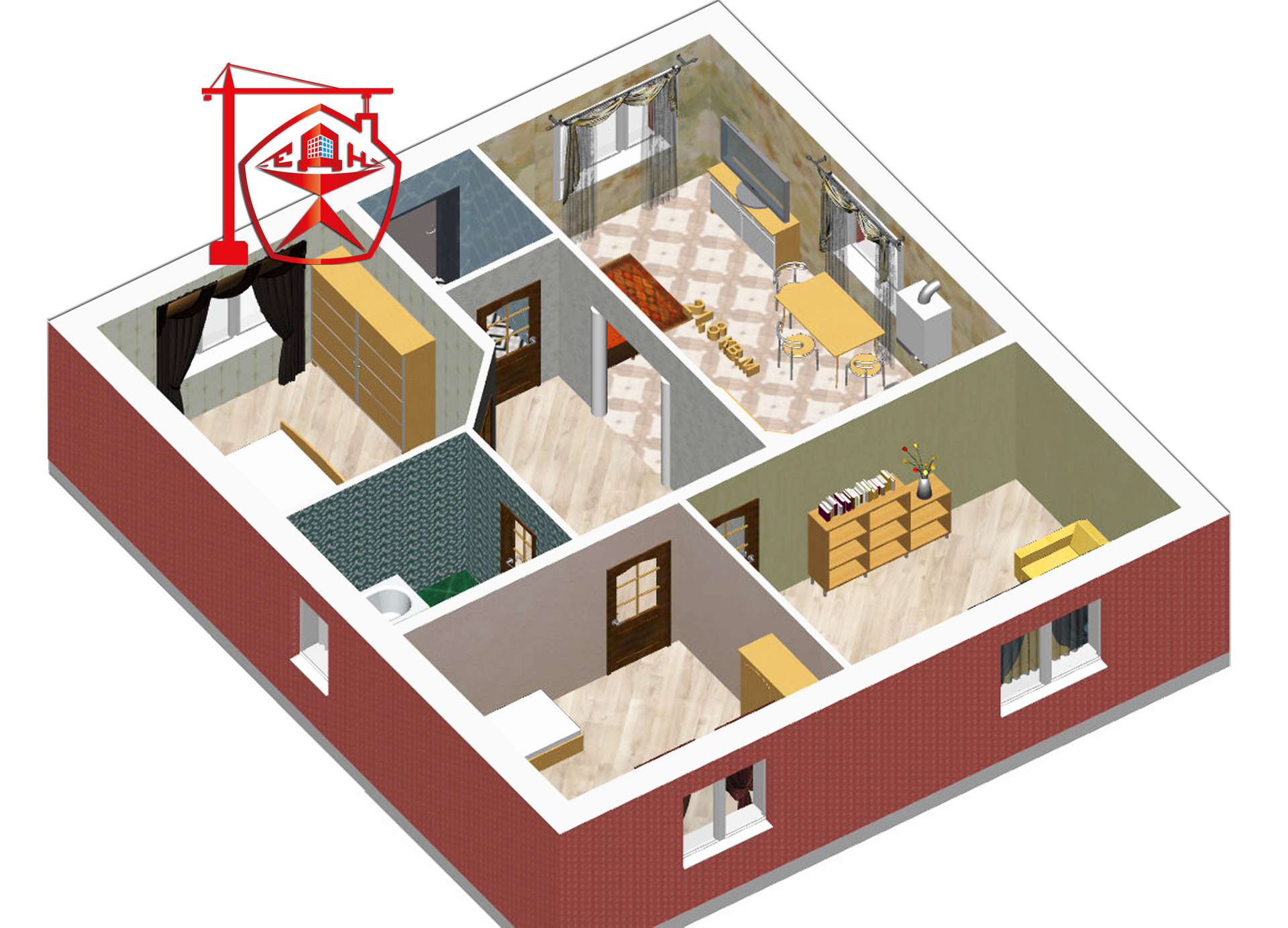 - кухня-гостиная 21,8 кв. м;