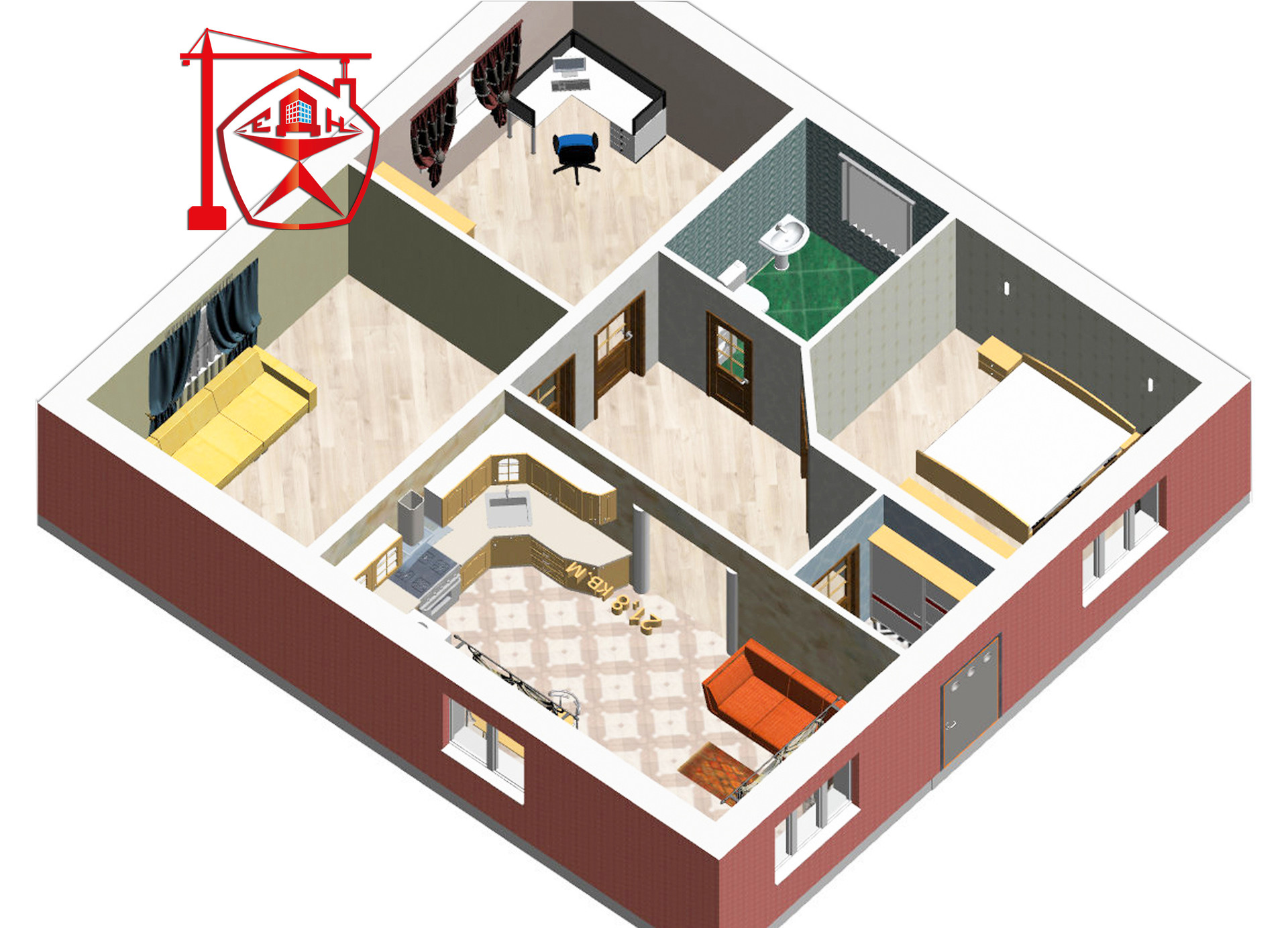 2. Стены – газосиликатные блоки 300 мм + утеплитель + облицовочный кирпич (г. Железногорск).