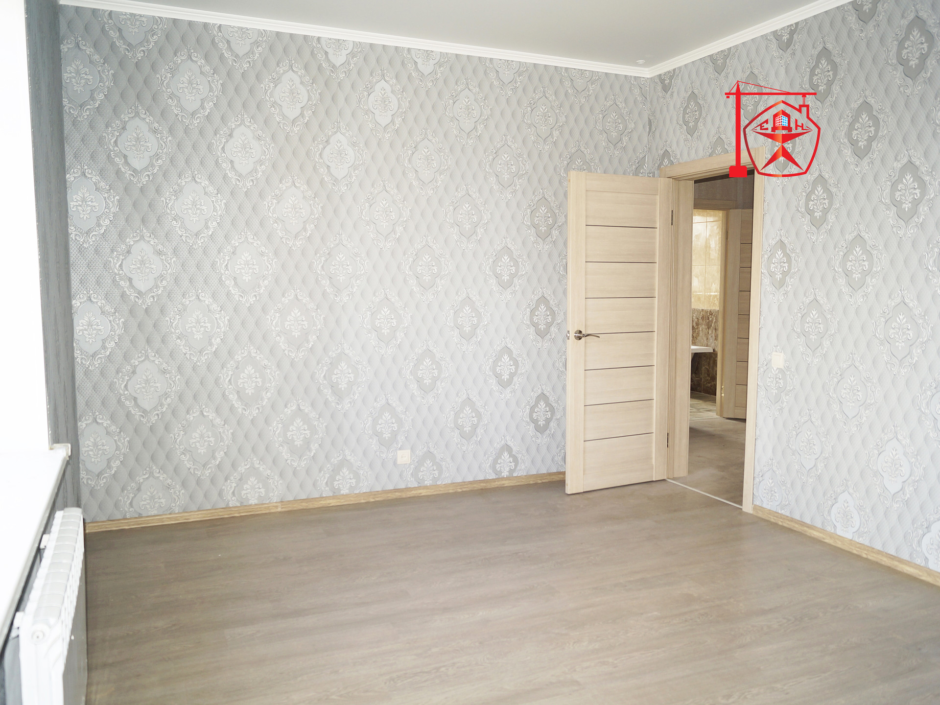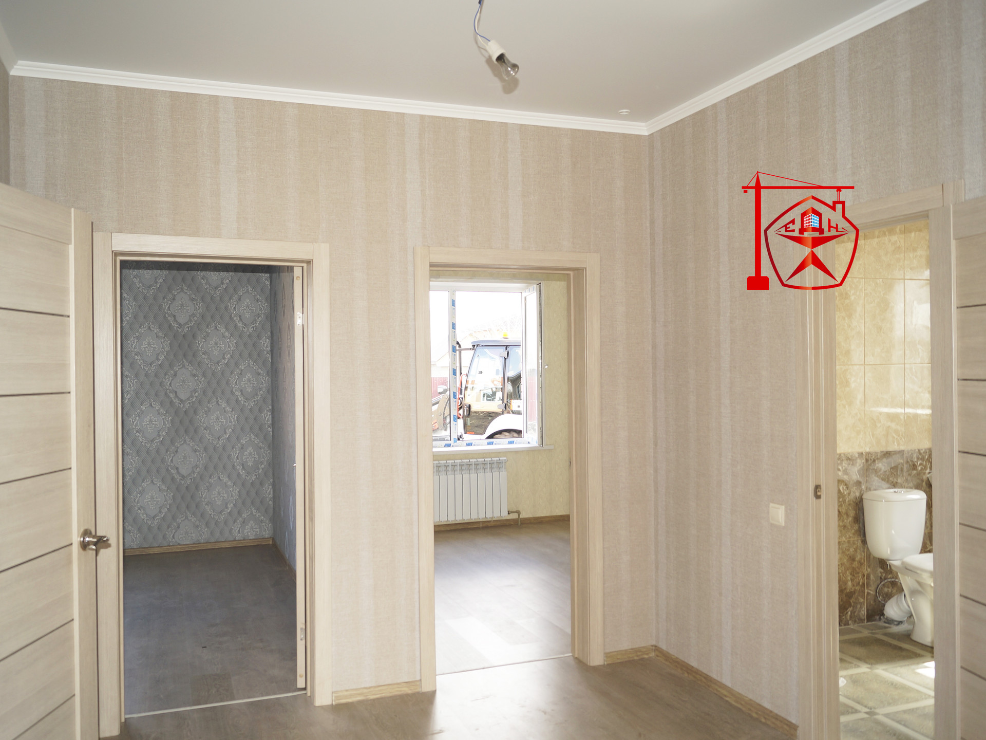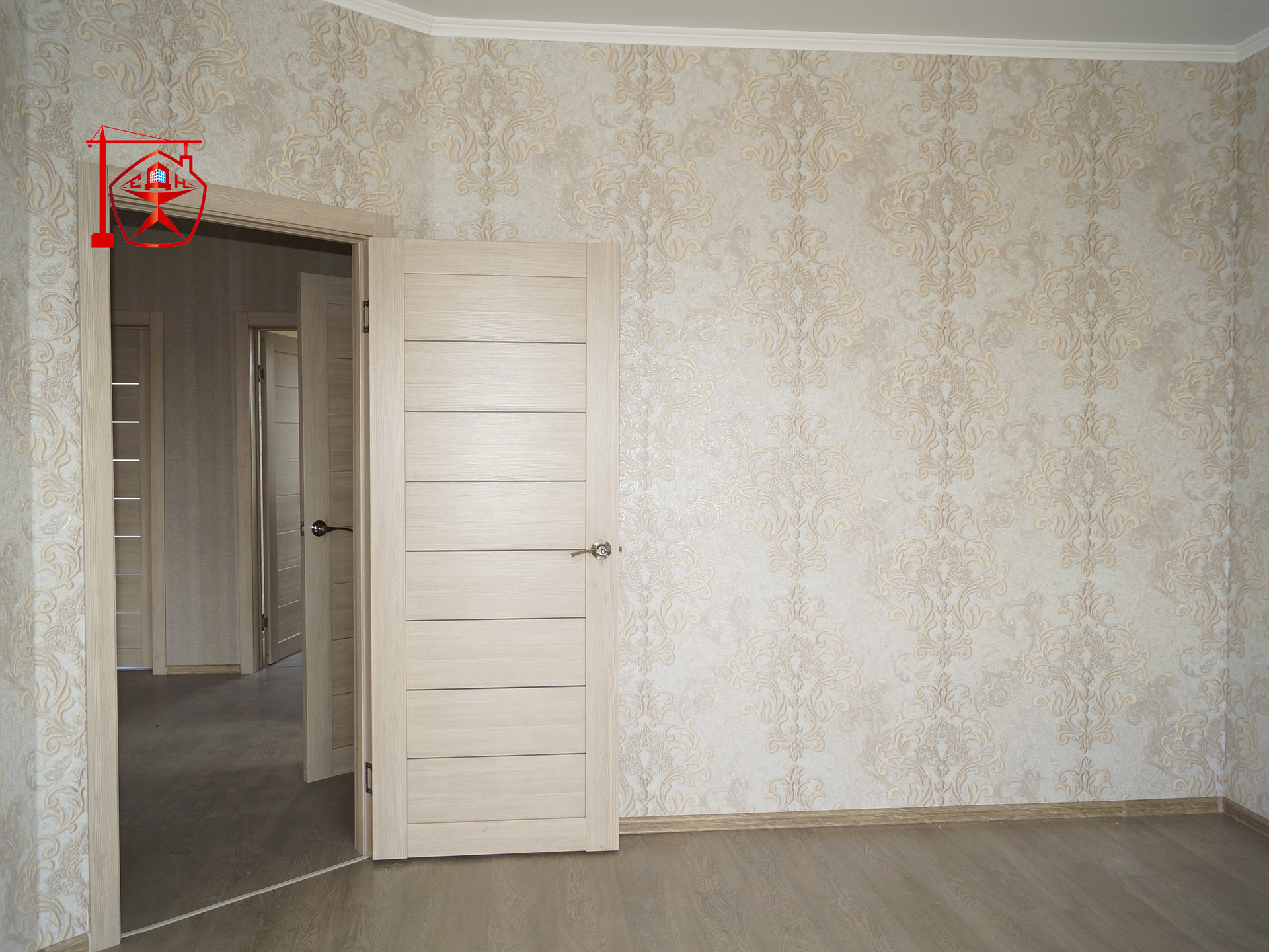 11. Внутренняя отделка: межкомнатные двери, обои, ламинат, современный кафель в санузле, кухне, прихожей, сантех.приборы (ванна, унитаз, раковина, полотенцесушитель).