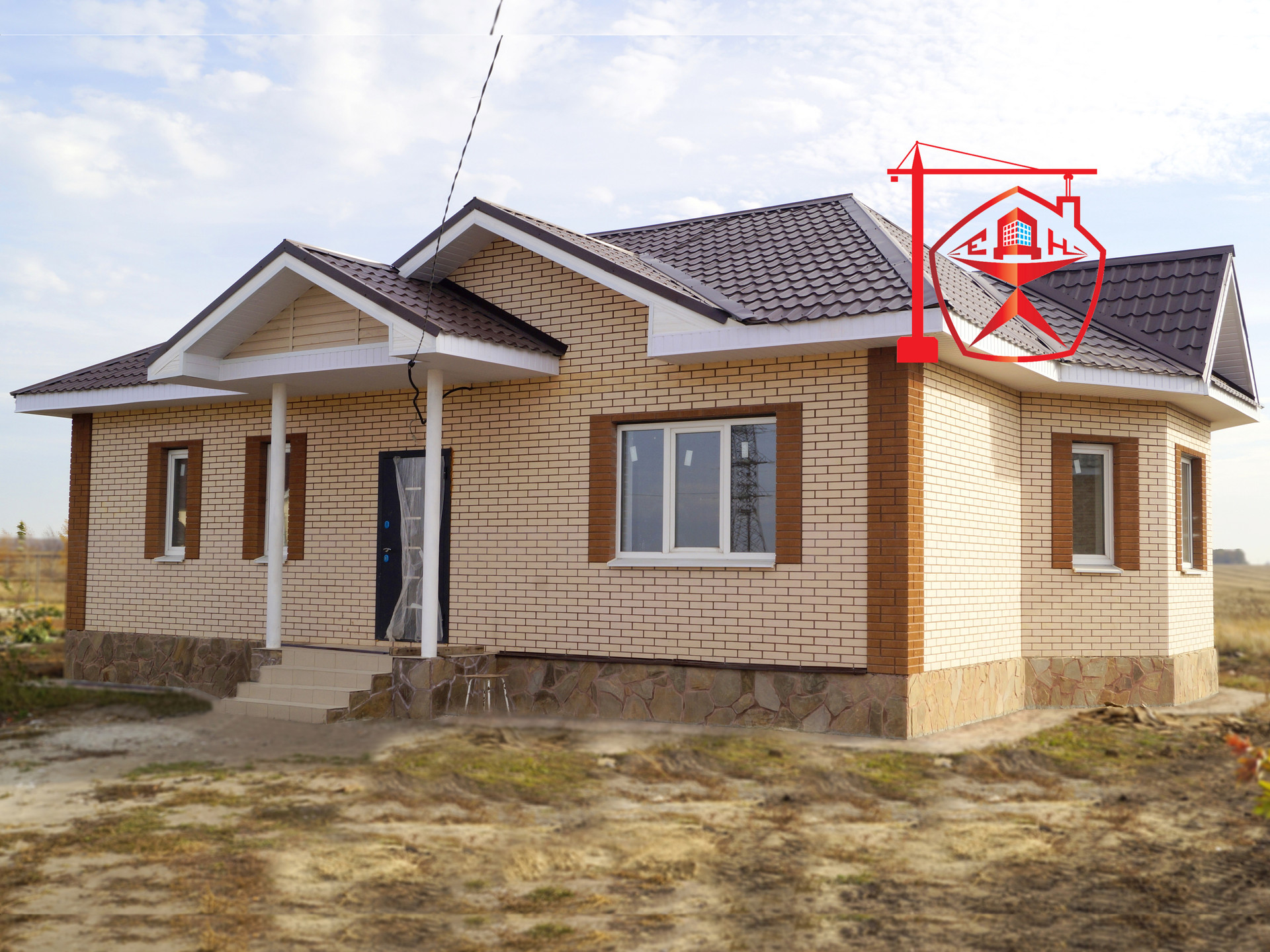 2. Стены (внешние и внутренние) из газосиликатного блока D500 (300 мм) + утеплитель + облицовка Железногорским кирпичом.