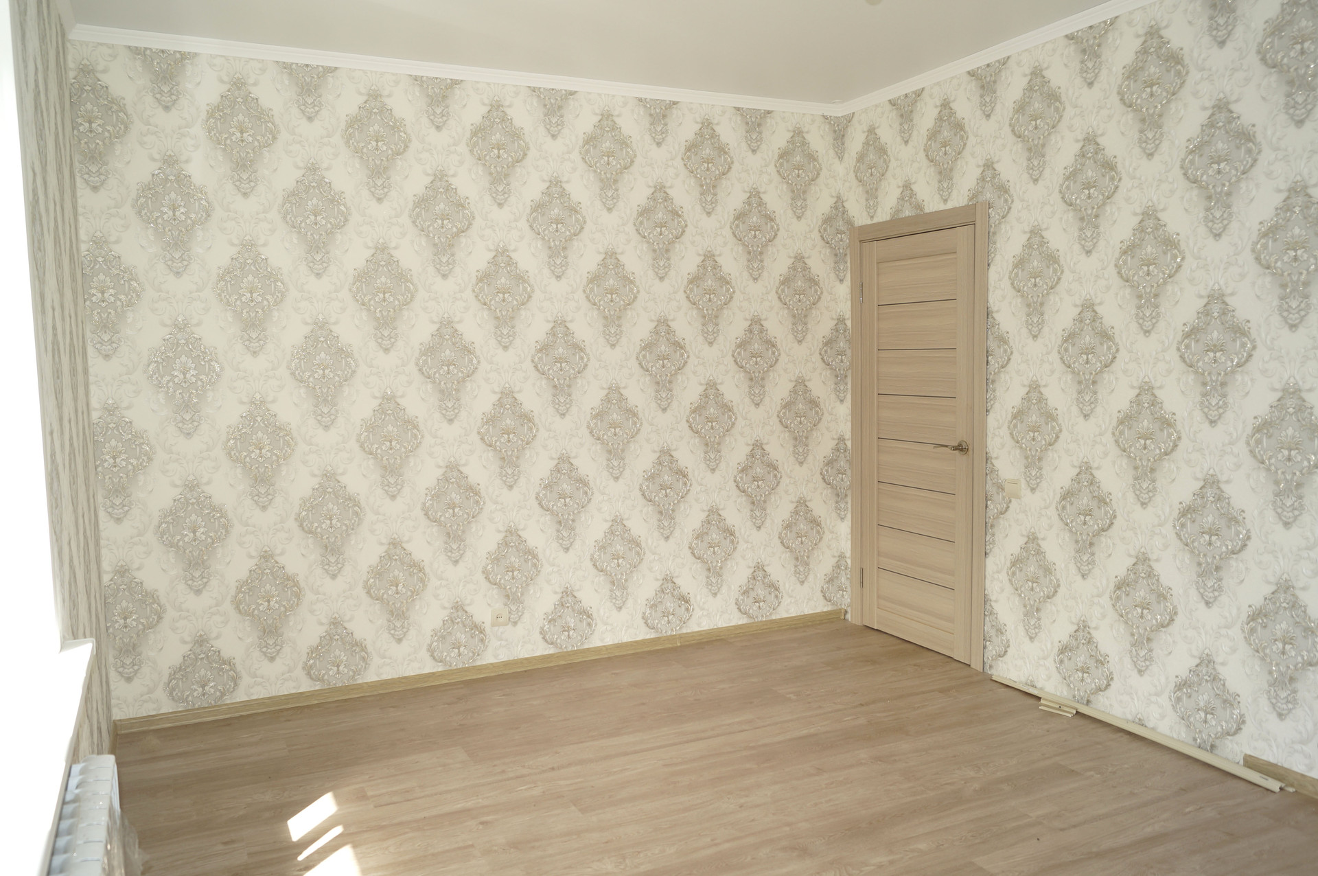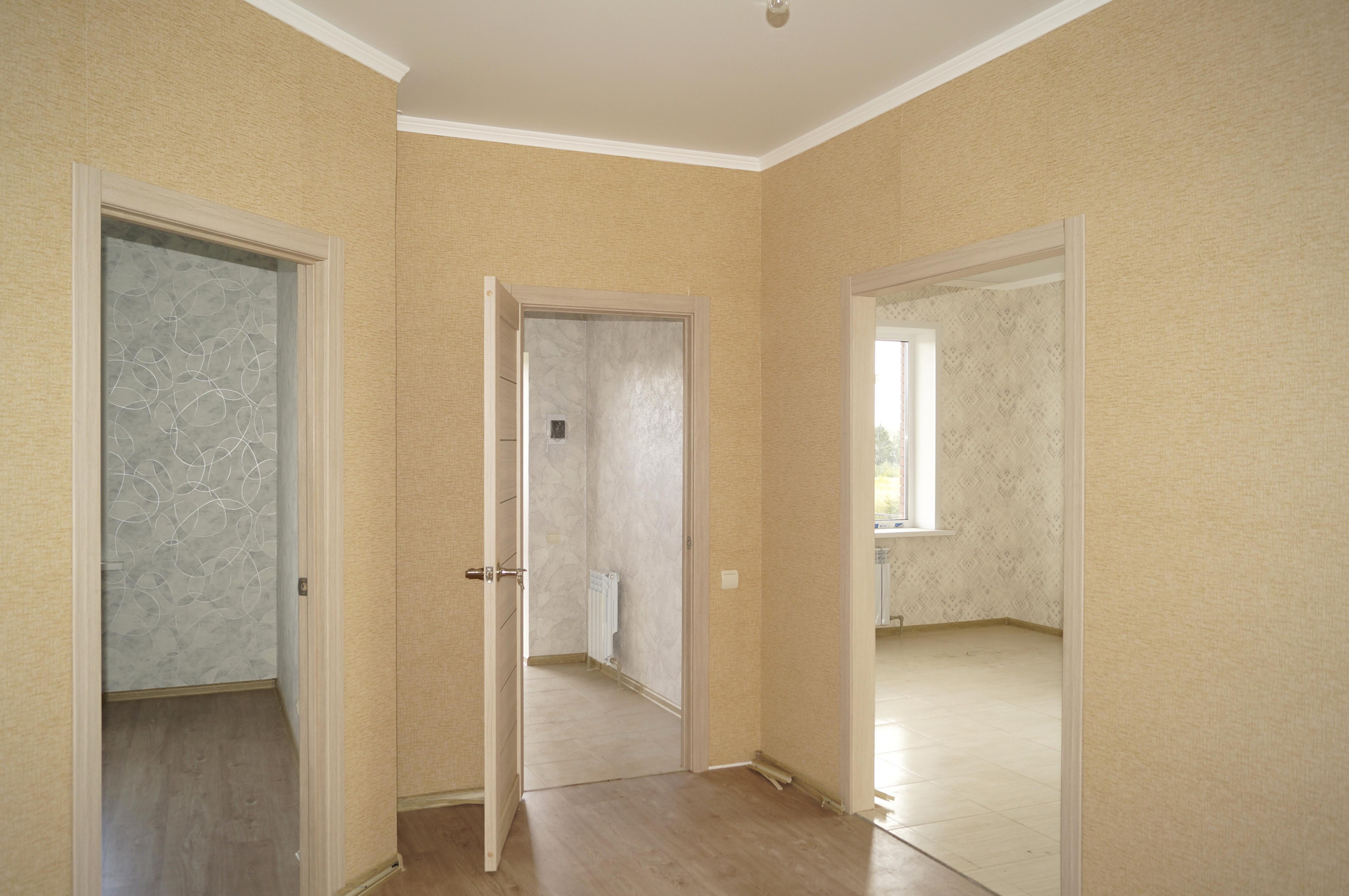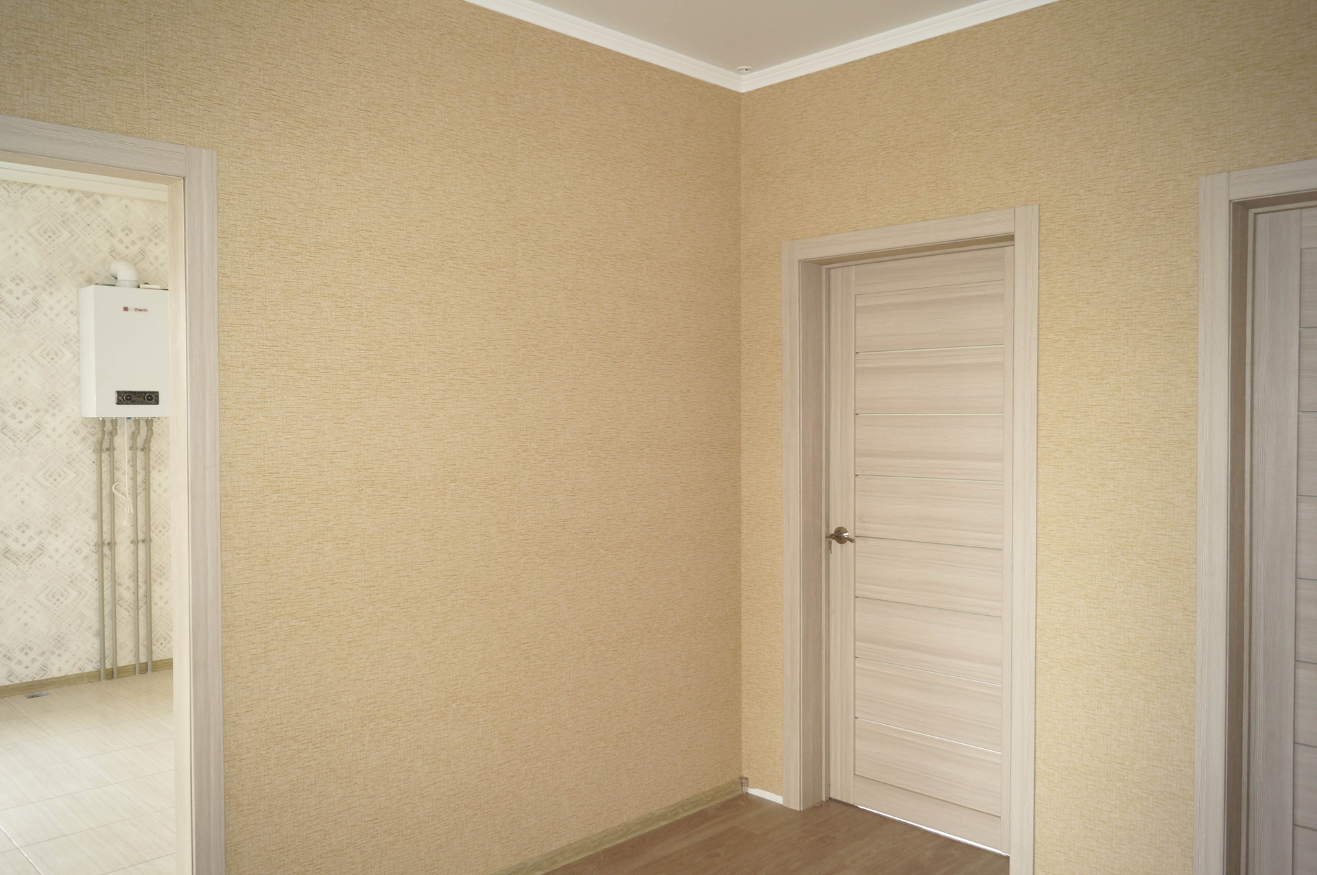 11. Внутренняя отделка: межкомнатные двери, обои, ламинат, современный кафель в санузле, кухне, прихожей, сантех.приборы (ванна, унитаз, раковина, полотенцесушитель).