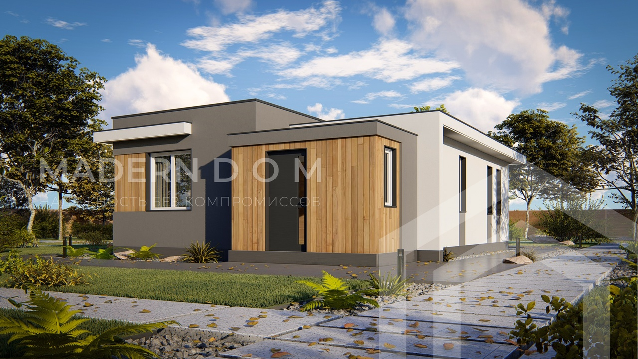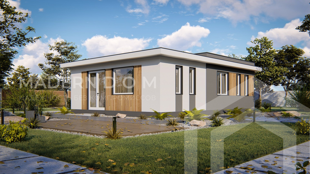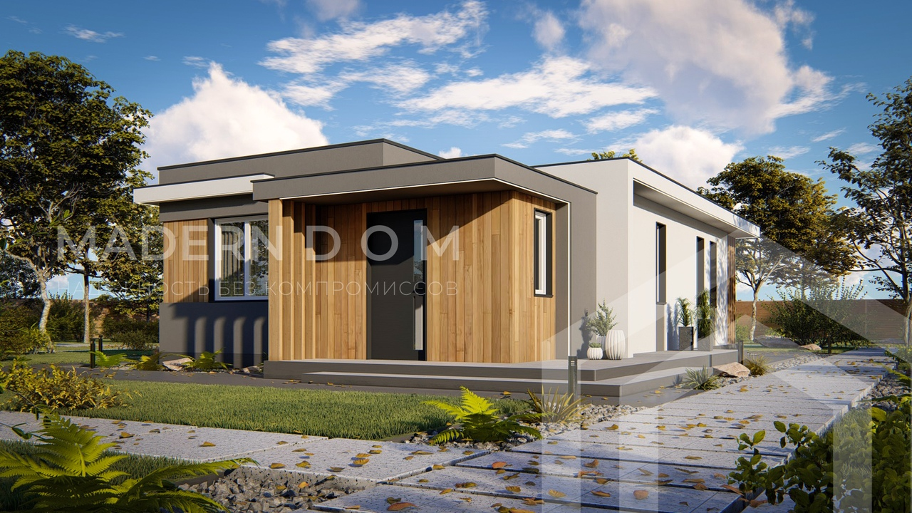 Уютный одноэтажный дом в минималистичном стиле Хай-Тек.