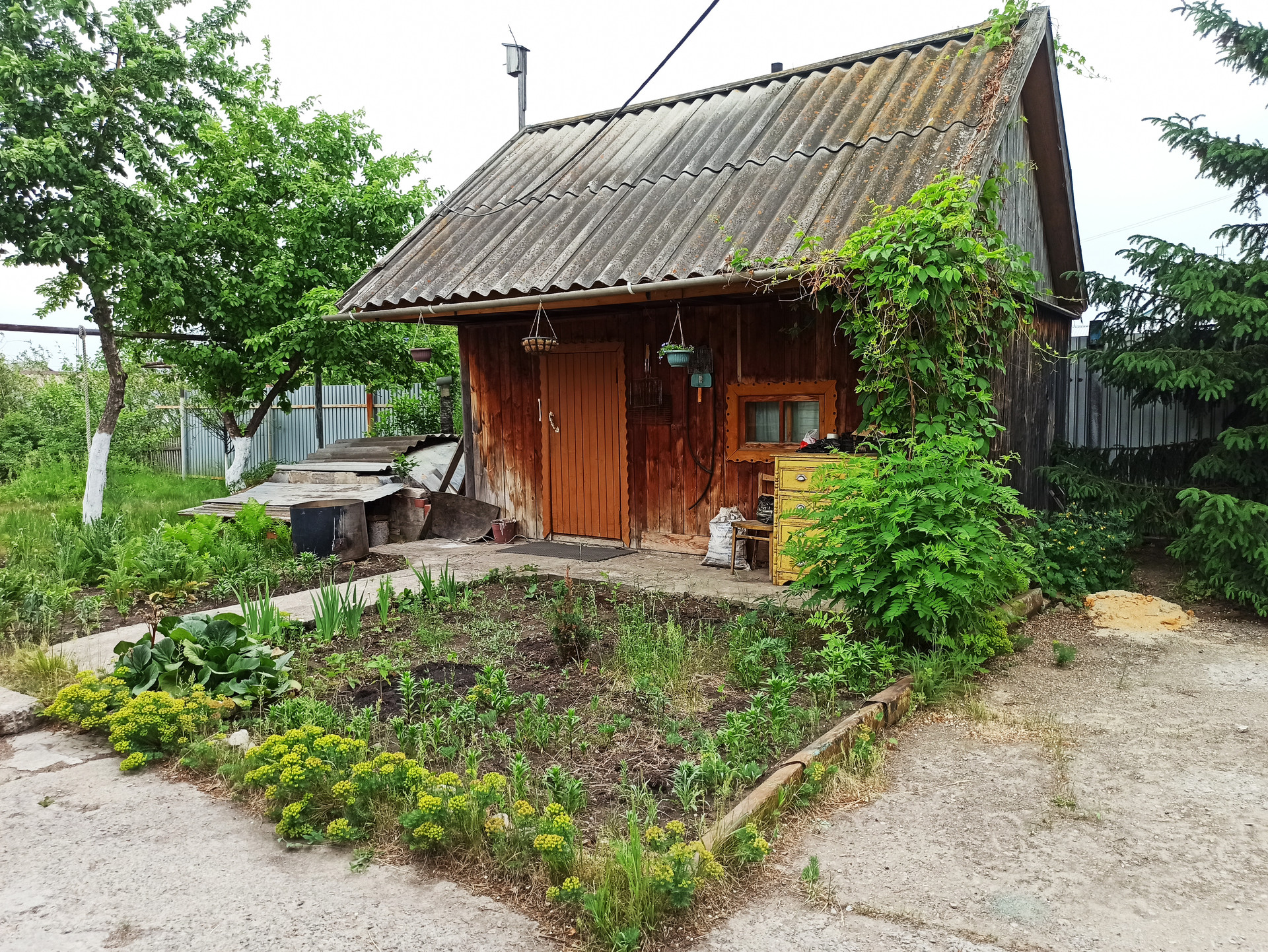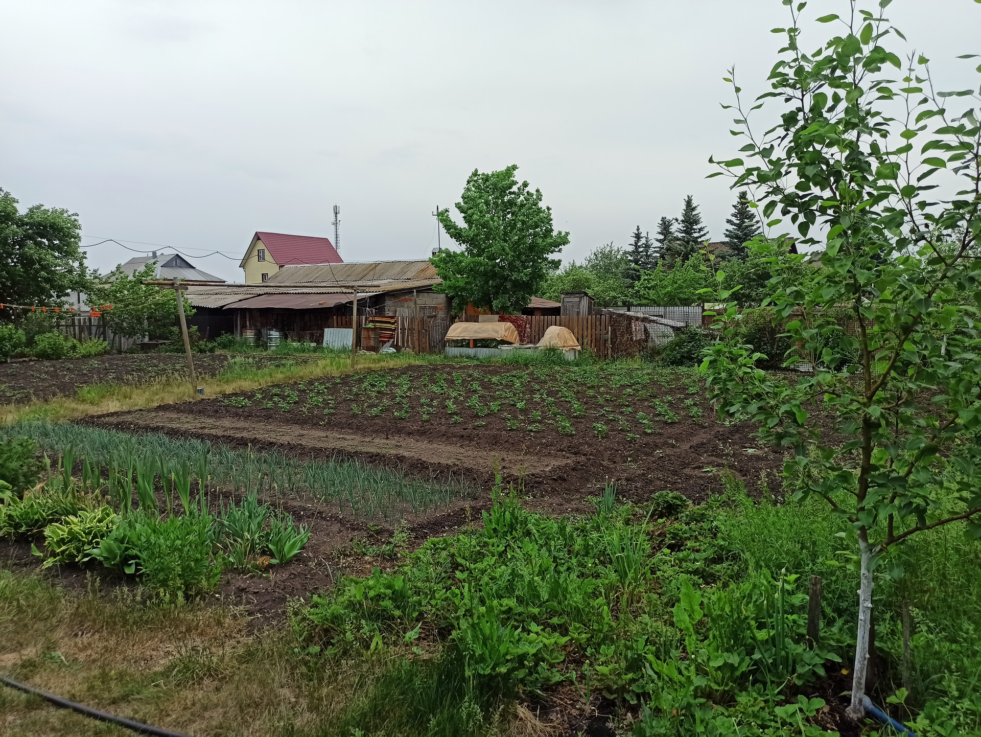 - Ухоженный огород (молодые плодоносящие деревья, ягоды, грядки).