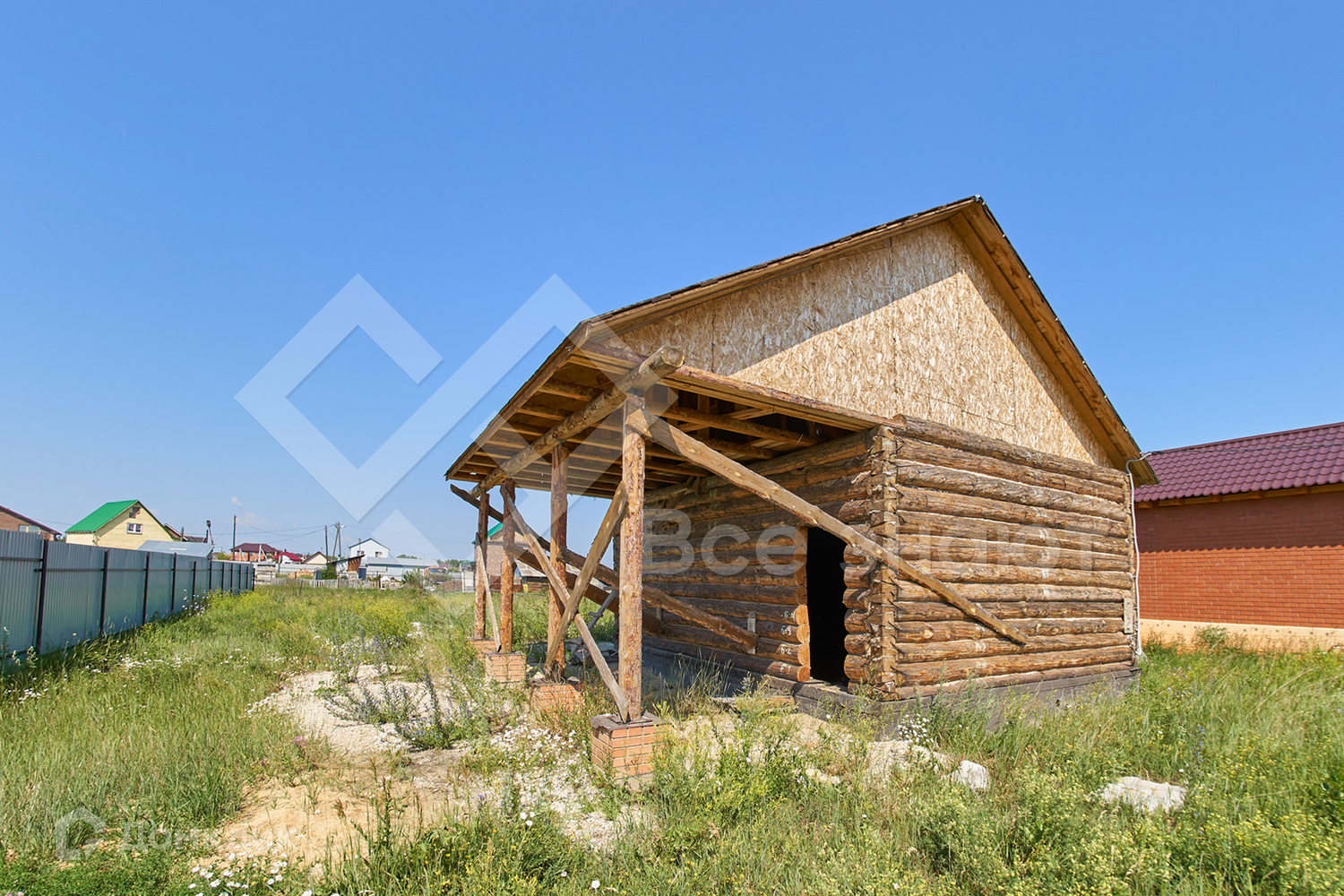 Надежный фундамент, на фундаменте стоит сруб 7Х8, дом заведен под крышу. Фотографии соответствуют действительности. Все сделано грамотно и с соблюдением всех строительных норм.