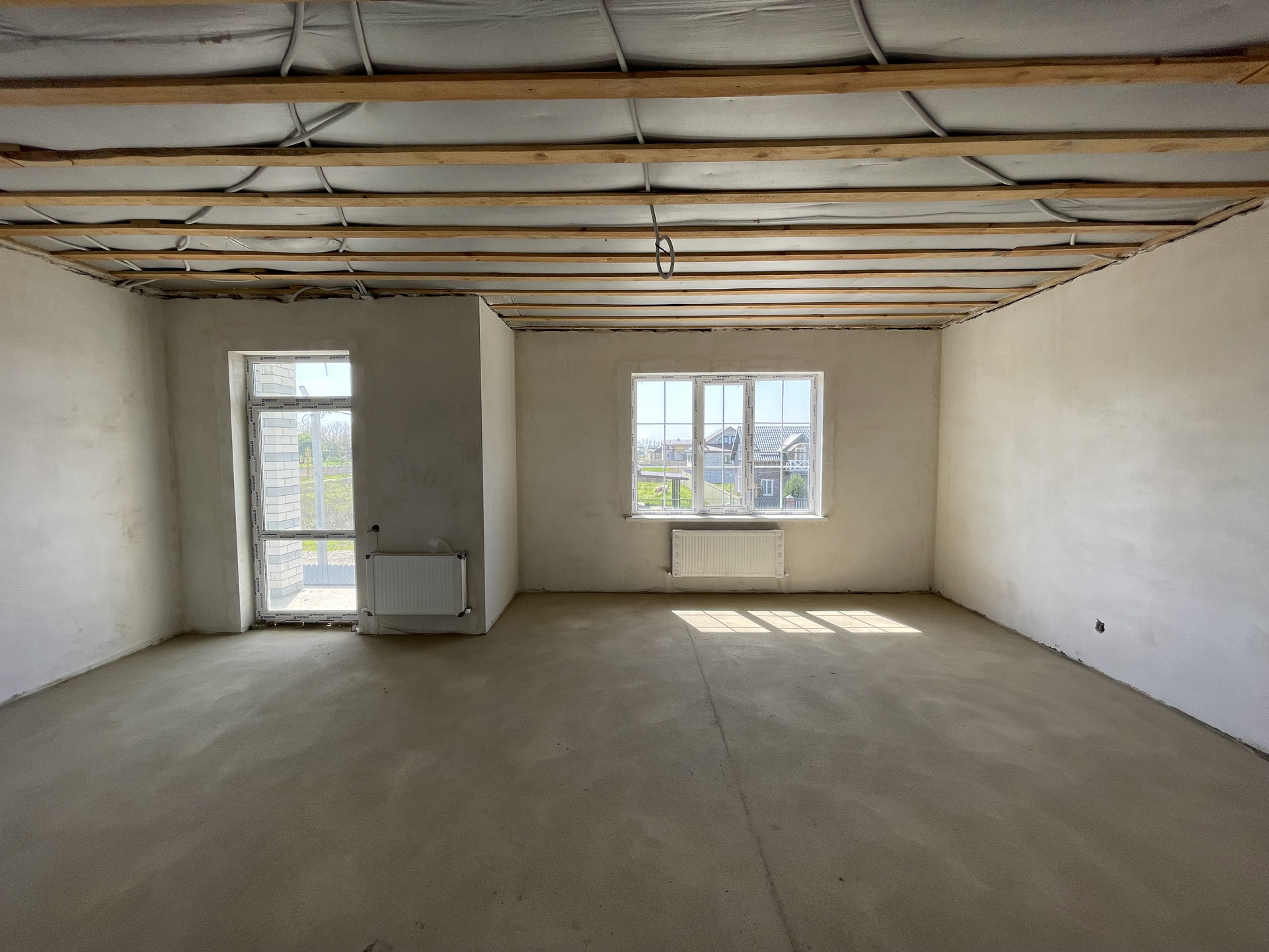 - Дом оборудован тёплым полом в местах общего пользования и батареями по европейским стандартам. Стены оштукатурены для поклейки обоев, электропроводка разведена.