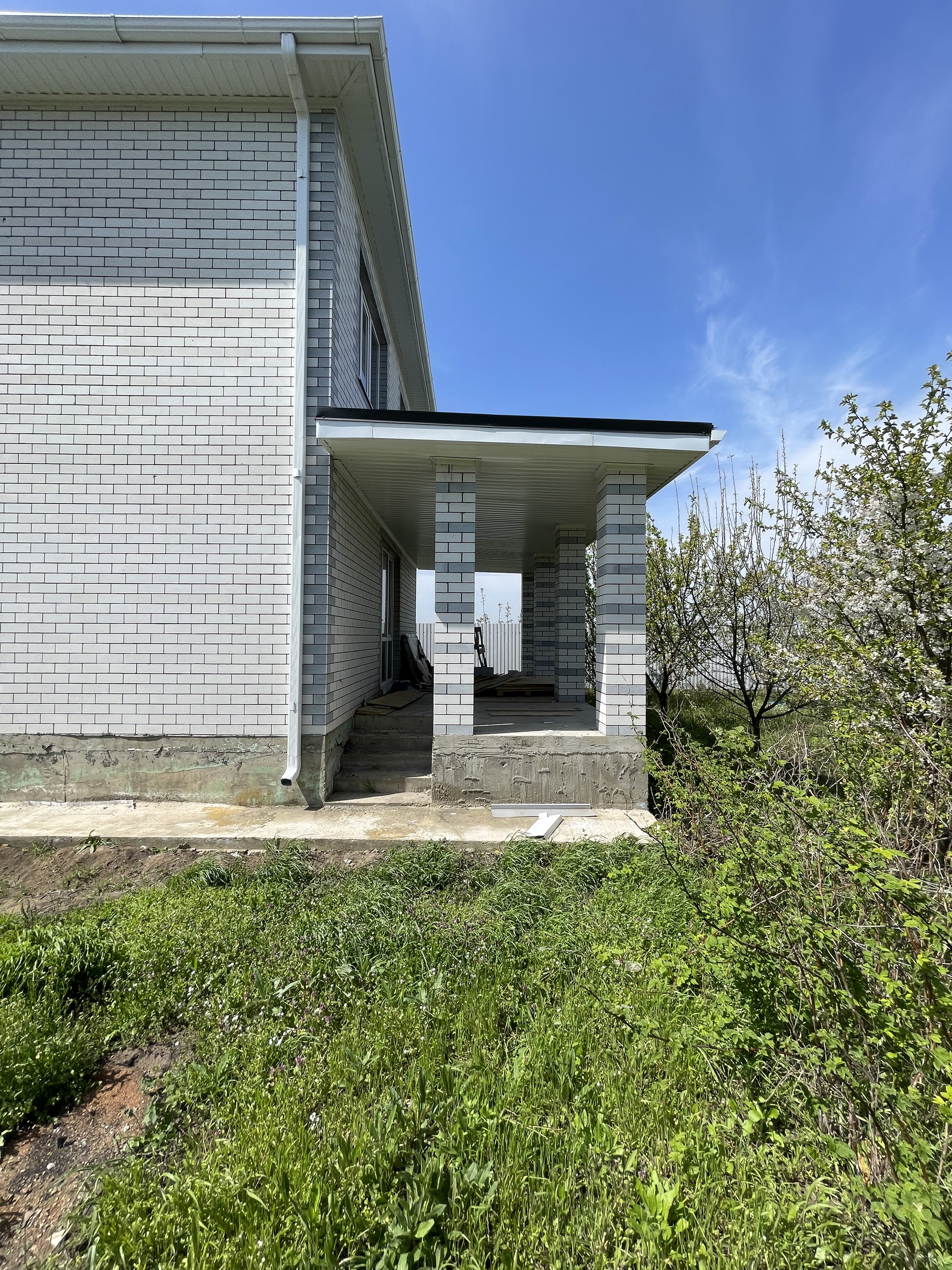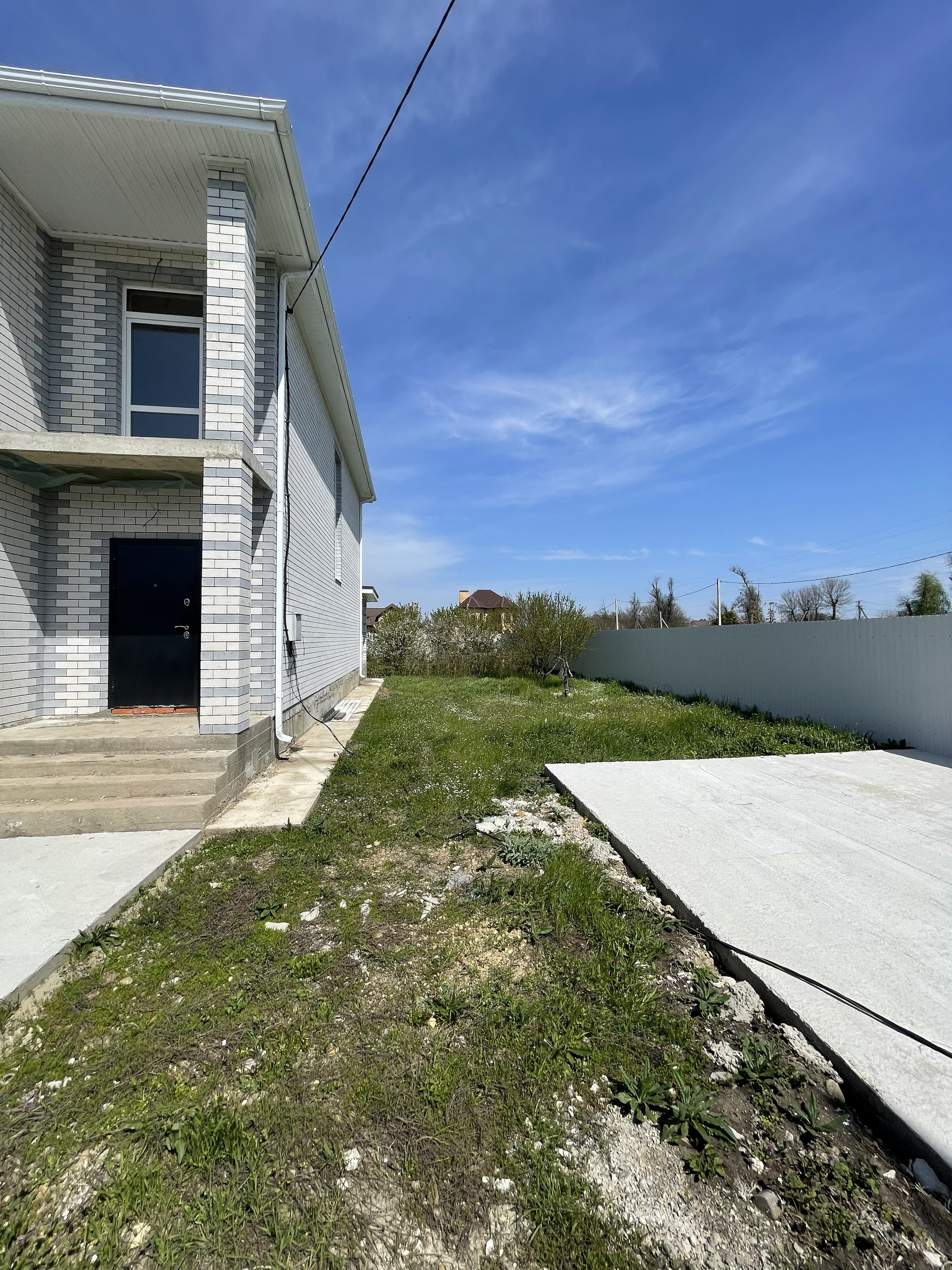 - Территории участка отсыпана слоем плодородной почвы. Въезд во двор оборудован роллетными воротами и бетонной площадкой под автомобиль.