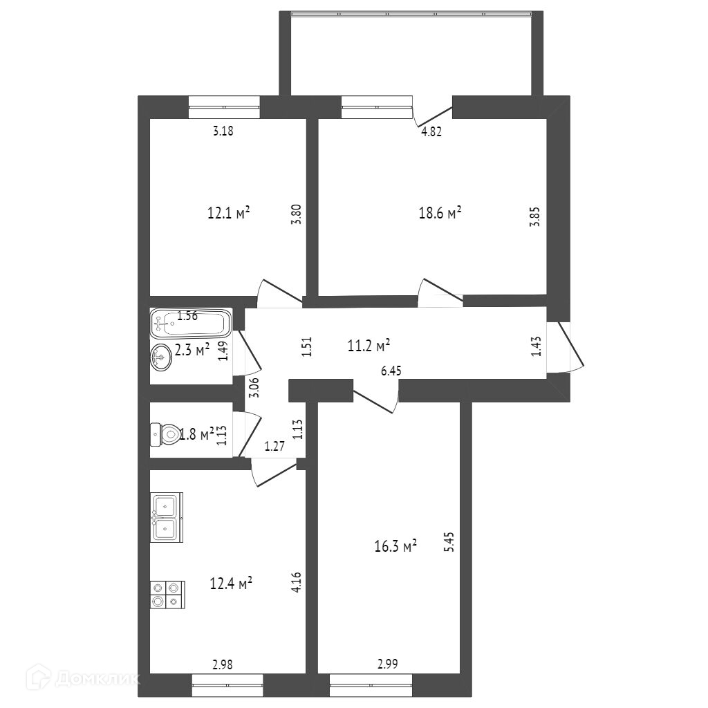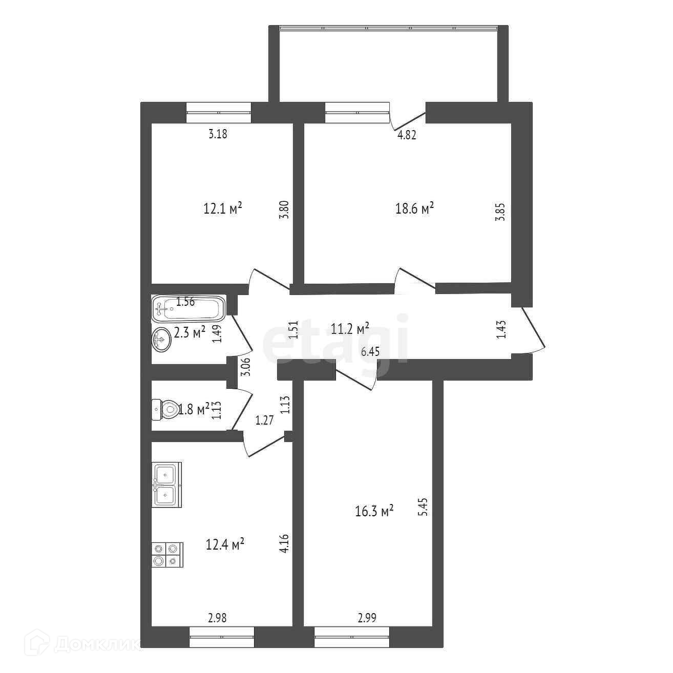 Общая площадь 74.7 м2