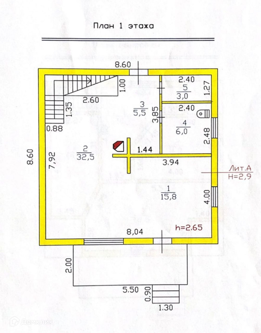 Высота потолков 2.9 м