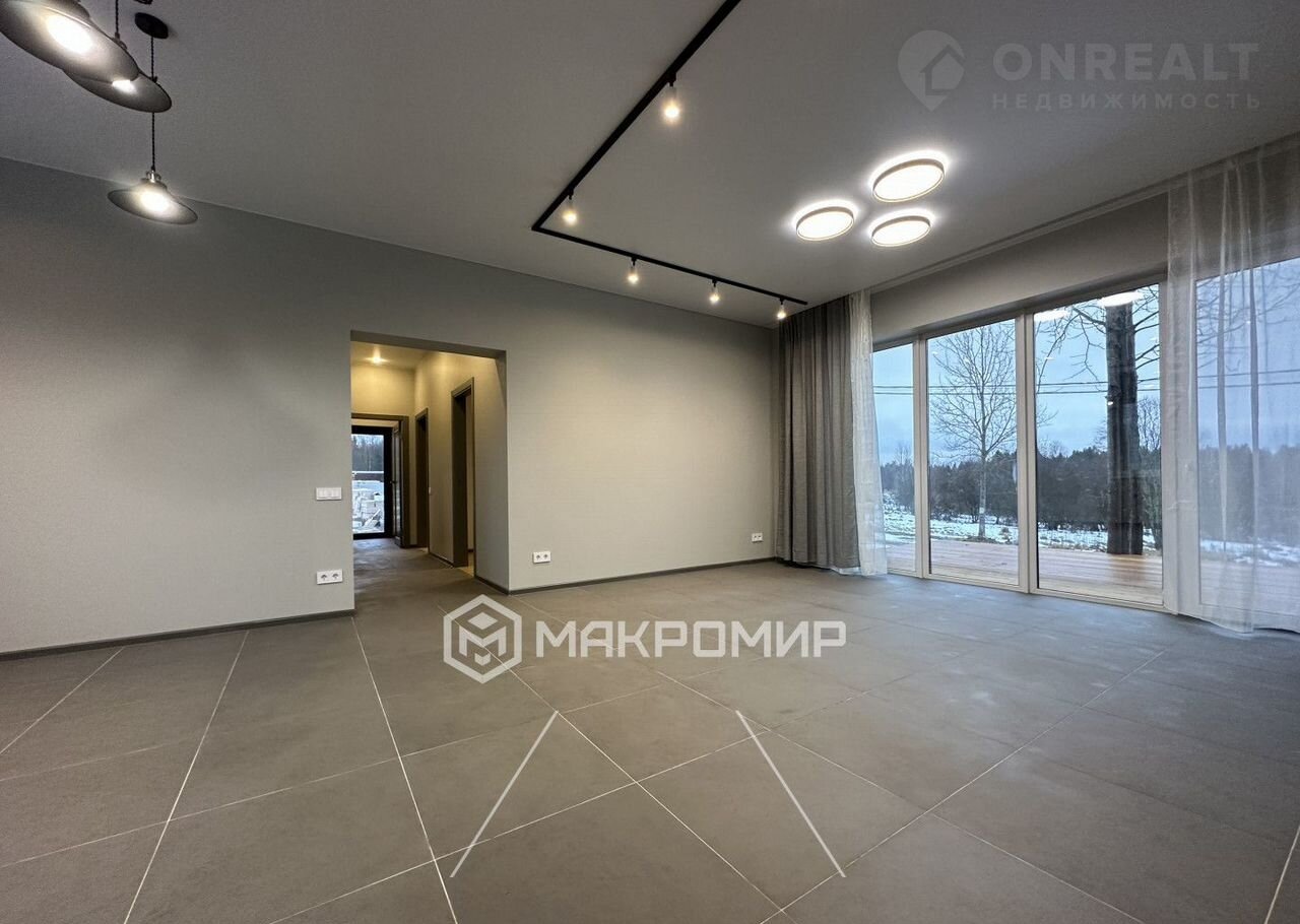 И это просторная кухня-гостиная с большими окнами во всю стену, с выходом на террасу, три спальни, два санузла, несколько хозяйственных помещений.