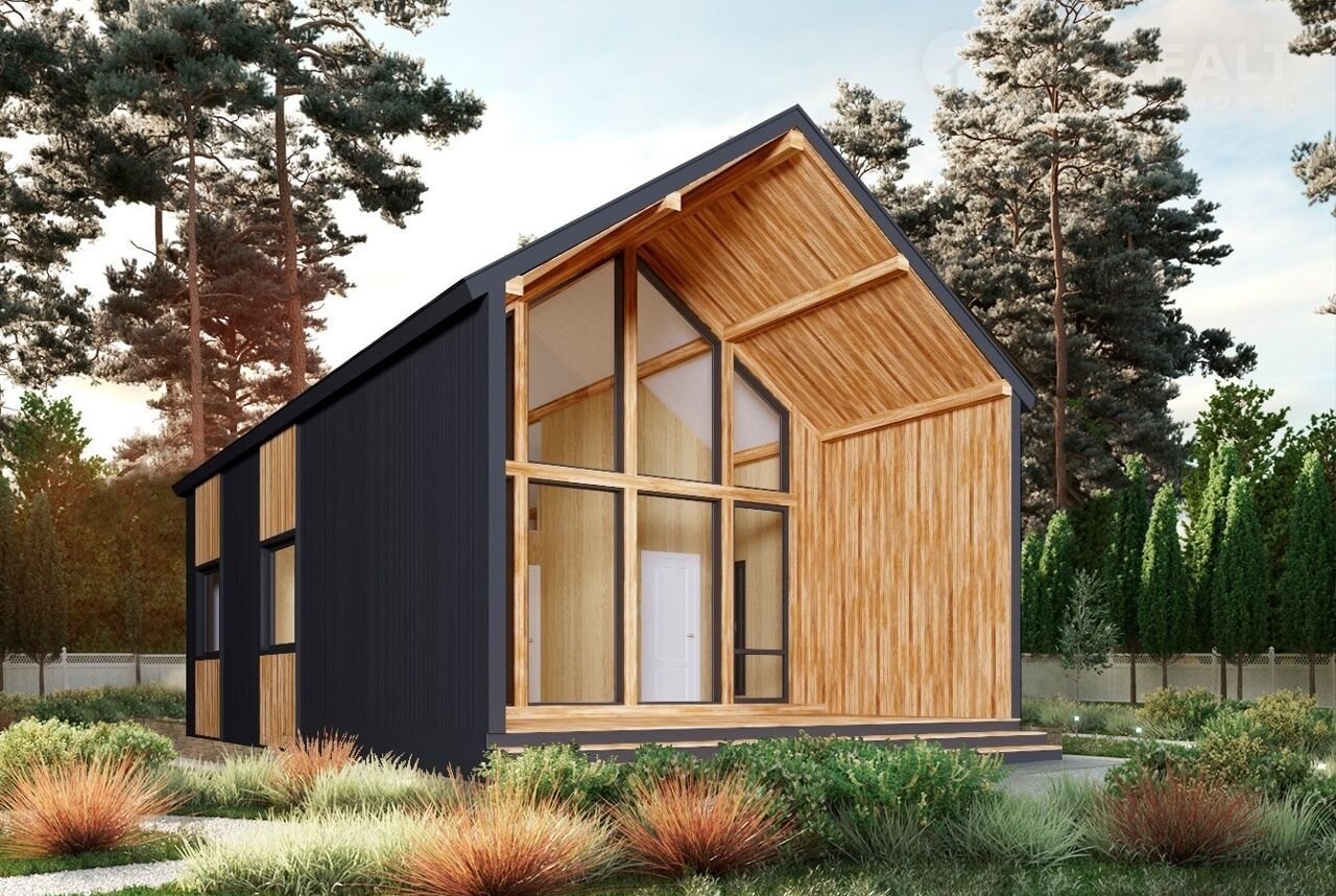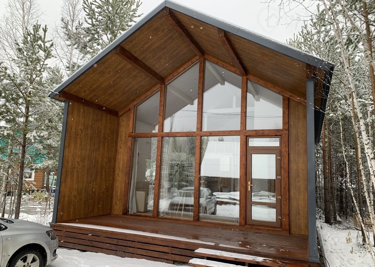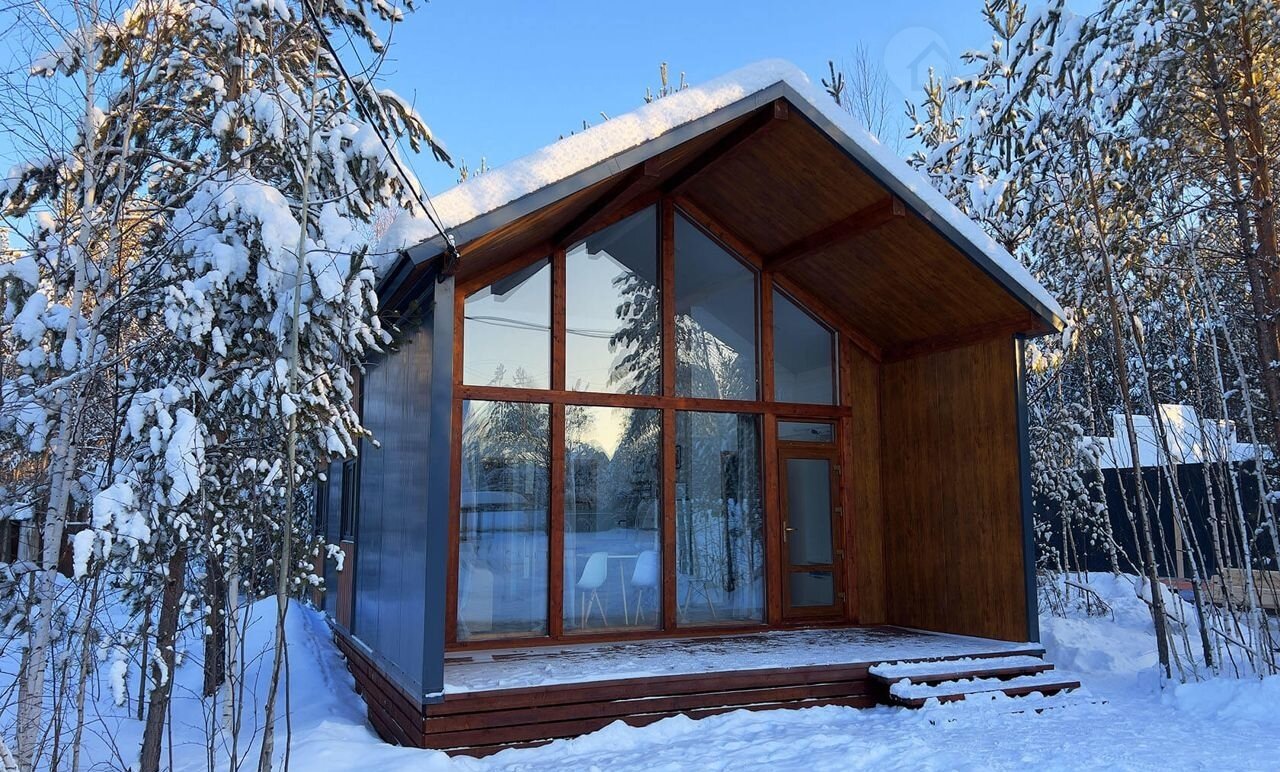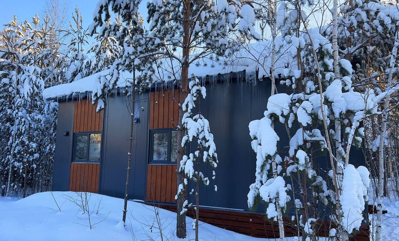 В коттедже просторная гостиная с панорамным остеклением и выходом на широкую террасу, две спальни, антресоль, на которой можно организовать лаунж зону, и совмещенный санузел. Водоснабжение организовано из индивидуальной скважины, установлен переливной септик, заведено электричество. Коттедж изготовлен из заводских панелей с утеплением, предназначен для круглогодичного проживания, энергоэффективен и неприхотлив в уходе.