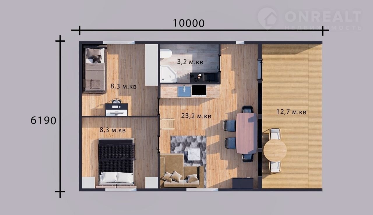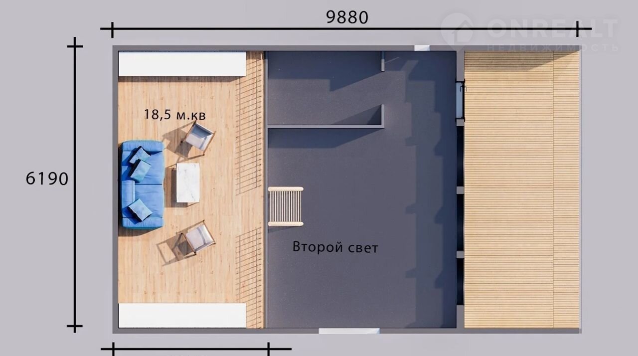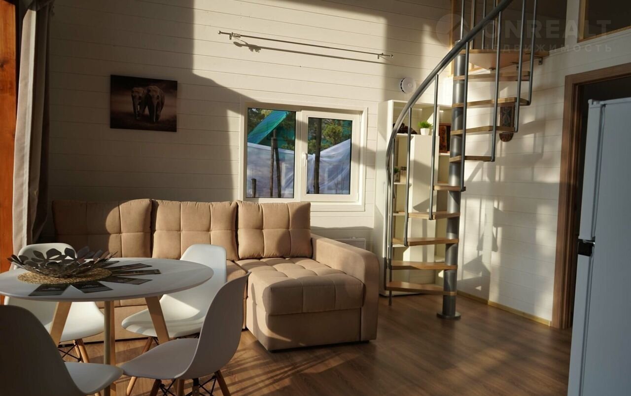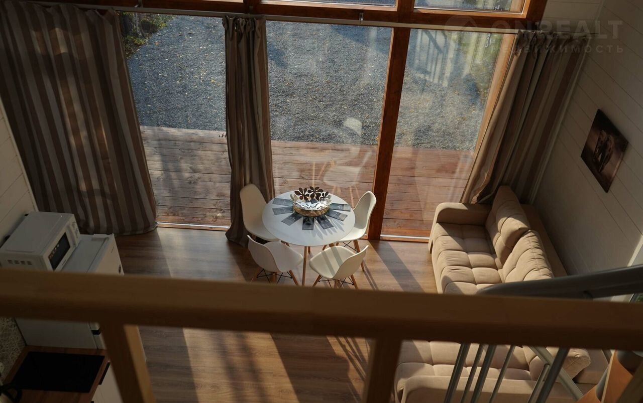 В коттедже просторная гостиная с панорамным остеклением и выходом на широкую террасу, две спальни, антресоль, на которой можно организовать лаунж зону, и совмещенный санузел. Водоснабжение организовано из индивидуальной скважины, установлен переливной септик, заведено электричество. Коттедж изготовлен из заводских панелей с утеплением, предназначен для круглогодичного проживания, энергоэффективен и неприхотлив в уходе.