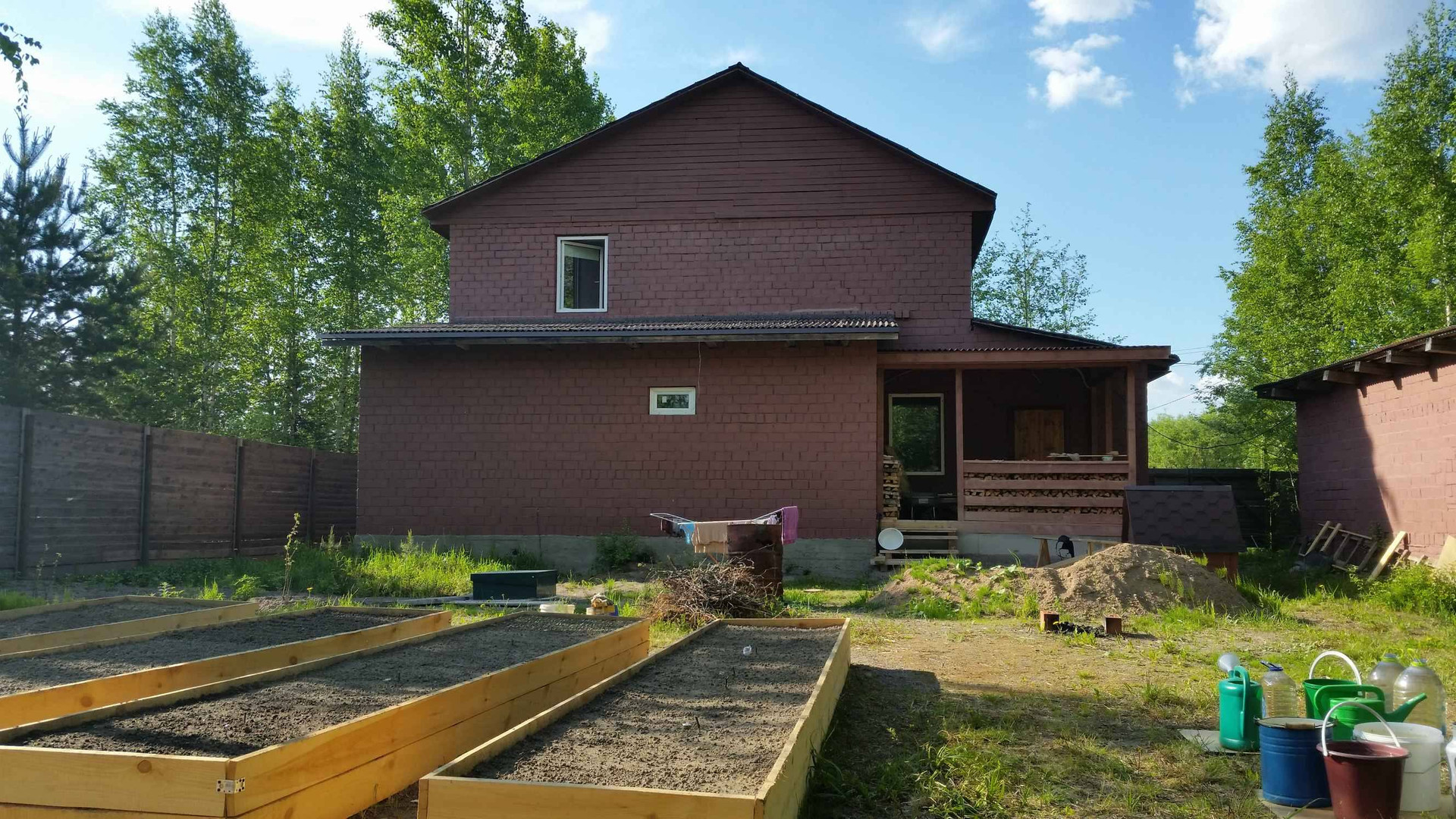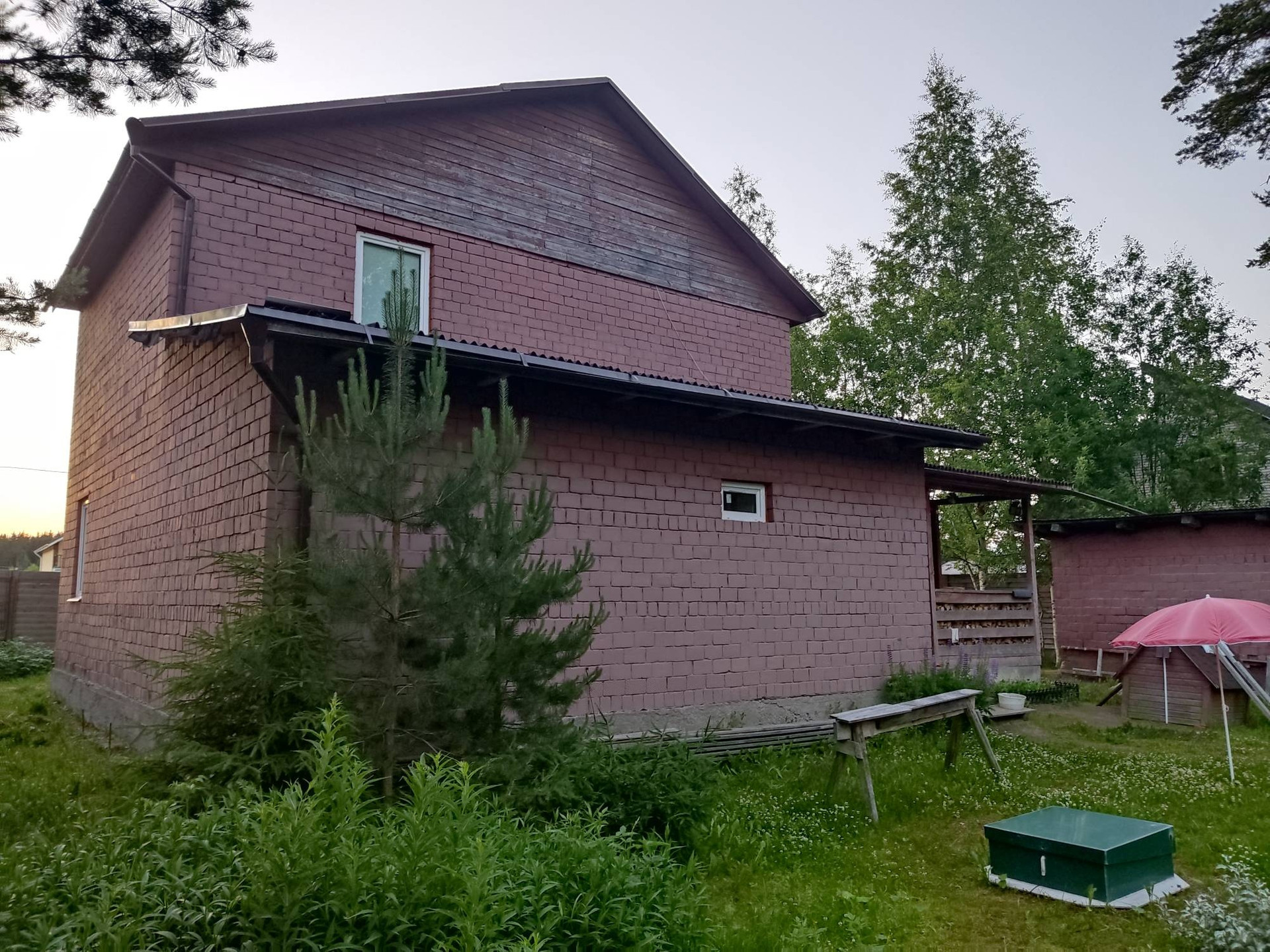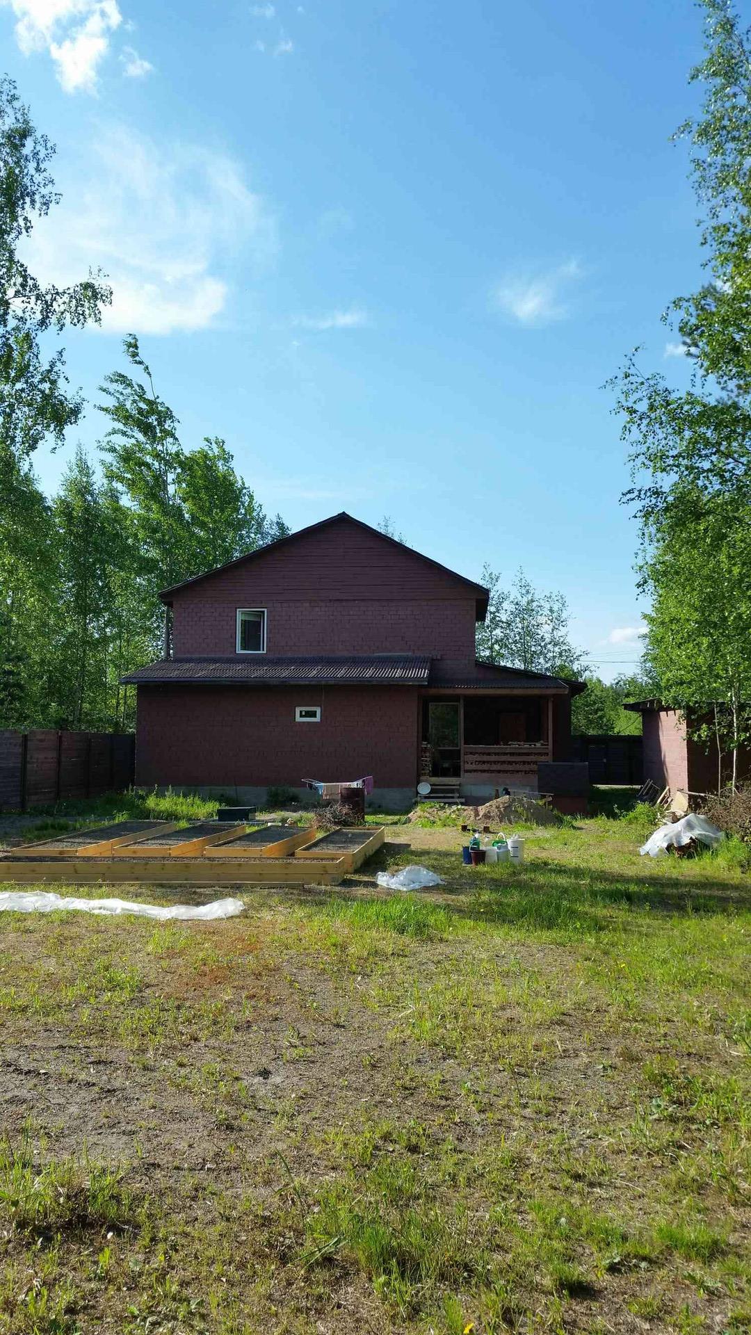 Вашему вниманию дорогие будущие собственники предлагается к продажи Катедж в 2 х этажный из чистого эксклюзивного кирпича, очень тёплого и в тоже время он хорошо вентилируется, крупного красного кирпича. С участком 15 соток, участок выровнен,подсыпан,, правильной формы, сделан дренаж, сухой. О доме:в доме на первом этаже:прихожая с тёплой из кирпича вирандой 13кв.м., санузел:туалет с унитазом 3кв.м., 2холла по5кв. м., 2 комнатки по7кв. м., душевая с раковиной и комнатка под ванну. Это всё санузел который 26кв.м.Дальше на 1 этаже гостевая комната 35кв.м.с мебелью;кухня 18кв.м.со всеми кухонными приборами и мебелью, раковиной для мойки посуды. Второй этаж:Холл 18кв.м., и 2 спальни соответственно 20+13кв.м.Второй этаж не под крышу а целиковый в полный рост:2.55 метра высотой. Дом из целикового кирпича толщиной 35см+утепление15см+гипрок.В доме сделана полностью отделка:обои, ламинат, кафель, все сделано заходи и живи хоть зимой и летом. Вода в доме проведена по согревающей трубе, водопроводная станция, разведена по дому. В гостиной камин, по первому этажу автономное атопление, в радиаторах антифриз:зимой не нужно сливать. В с/узле бойлер на 80 литров. Около дома из такого же кирпича гараж 25 кв. м., правда пока неутеплен.Вокруг дома с участком забор деревянный 2метра.Вьезд и выезд с двух сторон. Самая высокая линия в садоводстве. На участке ели, берёзы и другие деревья. Хорошее место для отдыха. Недалеко озера в 3х км. Хорошие соседи, некоторые живут постоянно. Канализация скептик современная станция очистки.От ж/д станции Лейпясуо 12 минут пешком. Рядом 2магазина и один в садоводстве, привозят молоко, творог и всякие другие продукты из колхозов на автолавке.Звоните в любое время, с удовольствием покажем. Документы готовы:дом и участок зарегистрированы, собственность, межевание проведено. От трассы Скандинавия около 3х км, озеро Глубокое в 5 км, до Выборга 30 минут на электричке или на авто. Мебель в доме необходимая есть и запасы дров тоже. Электричество:15 Квт,электрощиток с двойным тарифом, в садоводстве детская площадка.