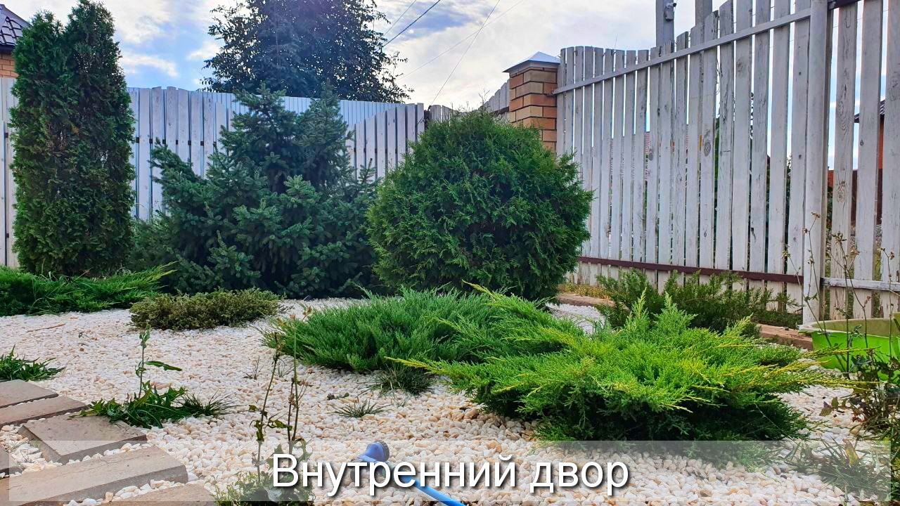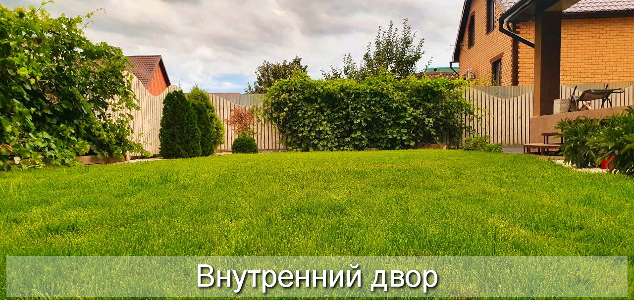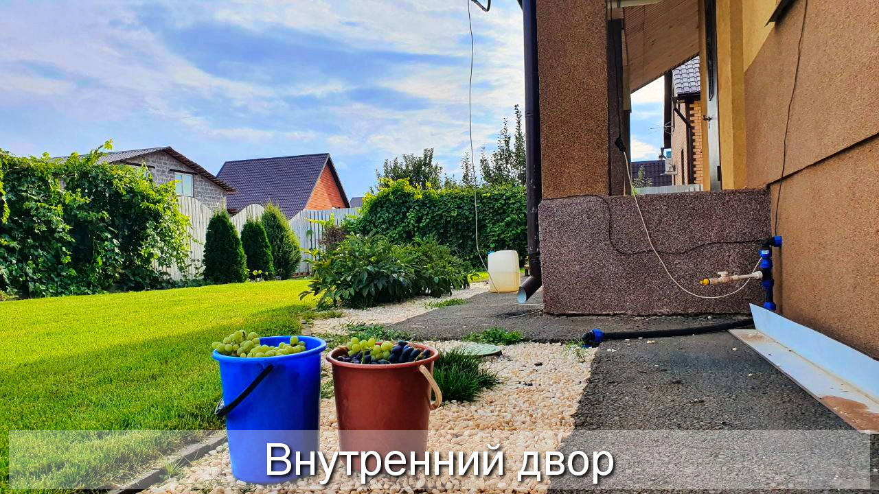 На территории участка имеется практически завершённое ландшафтное озеленение, автополив, подсветка, качели, густой зелёный газон с хвоинками, небольшой огород и 6 сортов плодоносящего районированного винограда. Красивый забор.