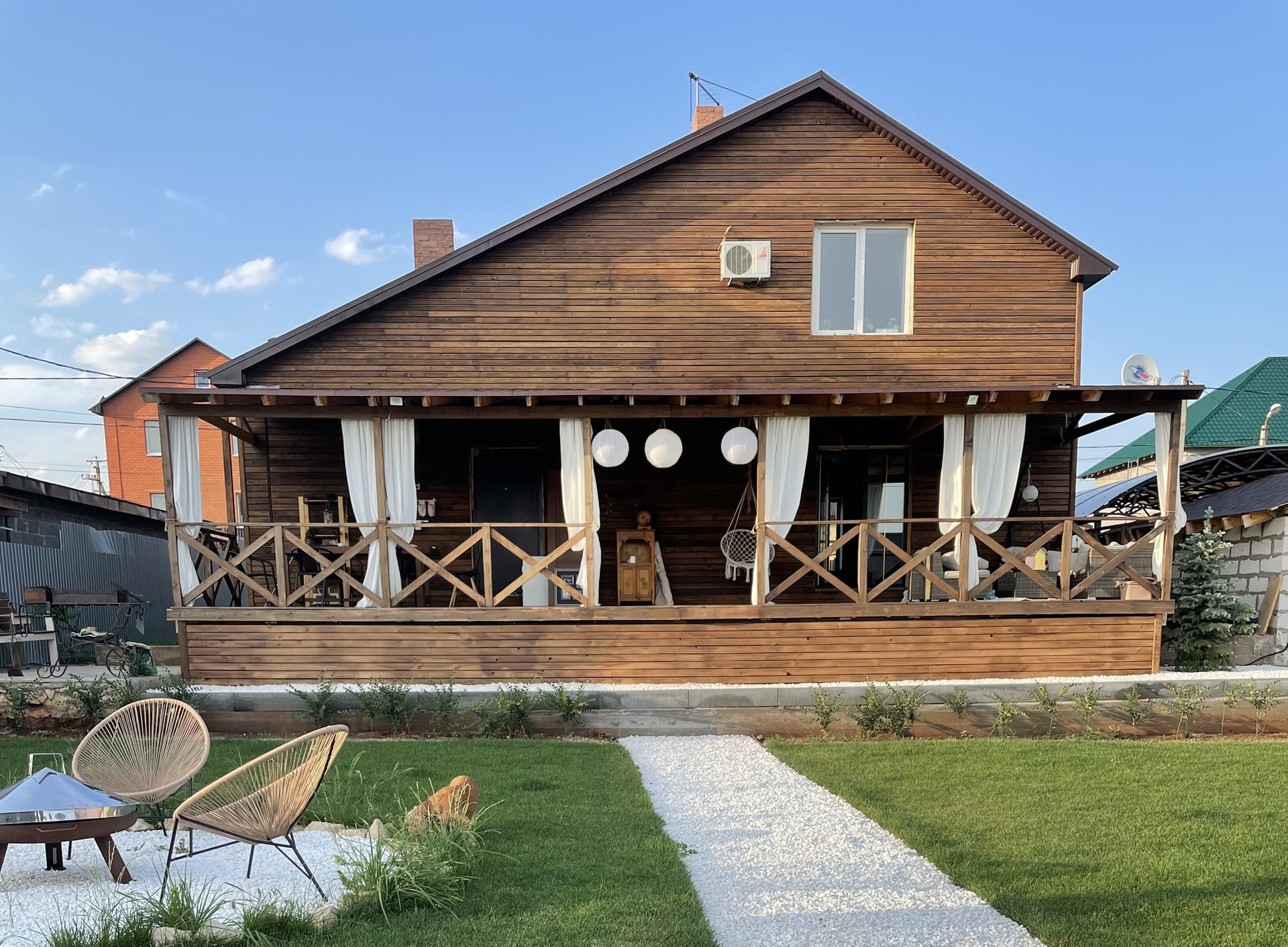 ​- Рулонный газон с автоматическим поливом на всей площади участка