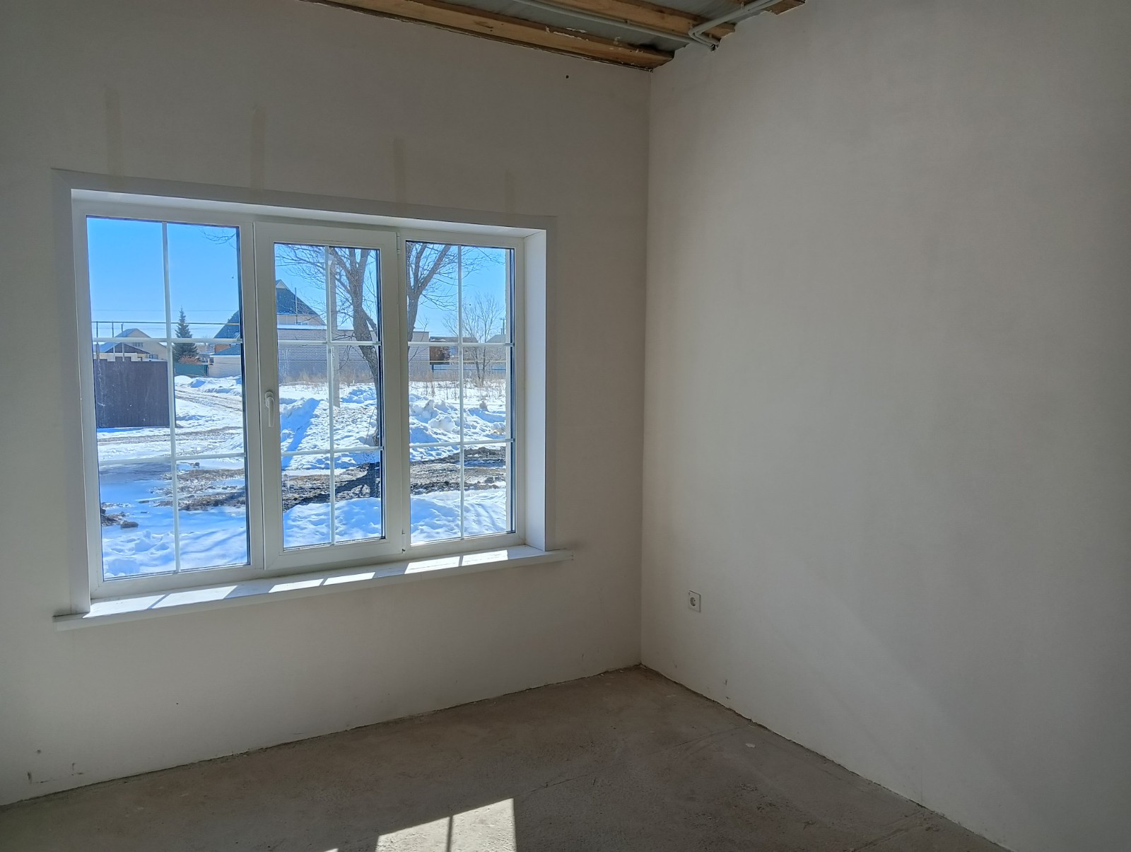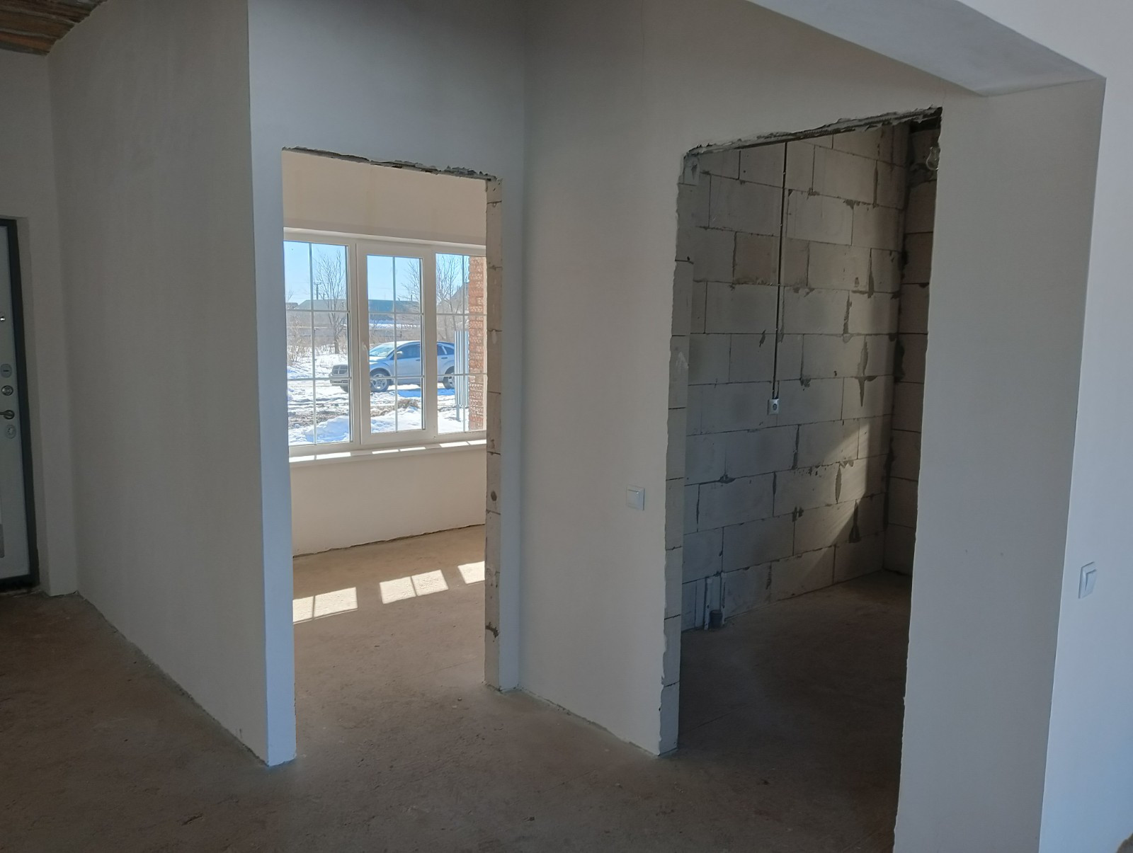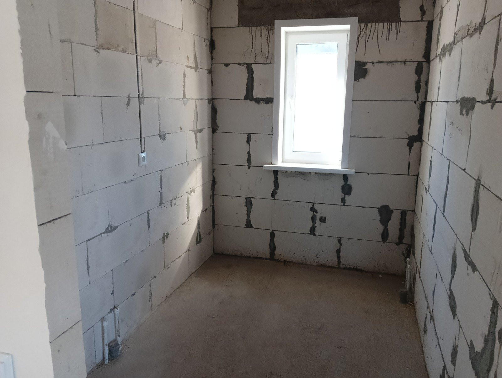 Стены отшпаклеваны под обои, выполнена разводка электрики и отопления -теплый пол, заведены все коммуникации