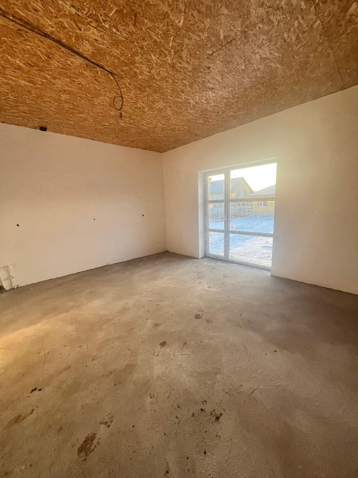 Предчистовая отделка: стены оштукатурены по маякам и отшпаклеваны под обои, полы - утепленная армированная бетонная стяжка.