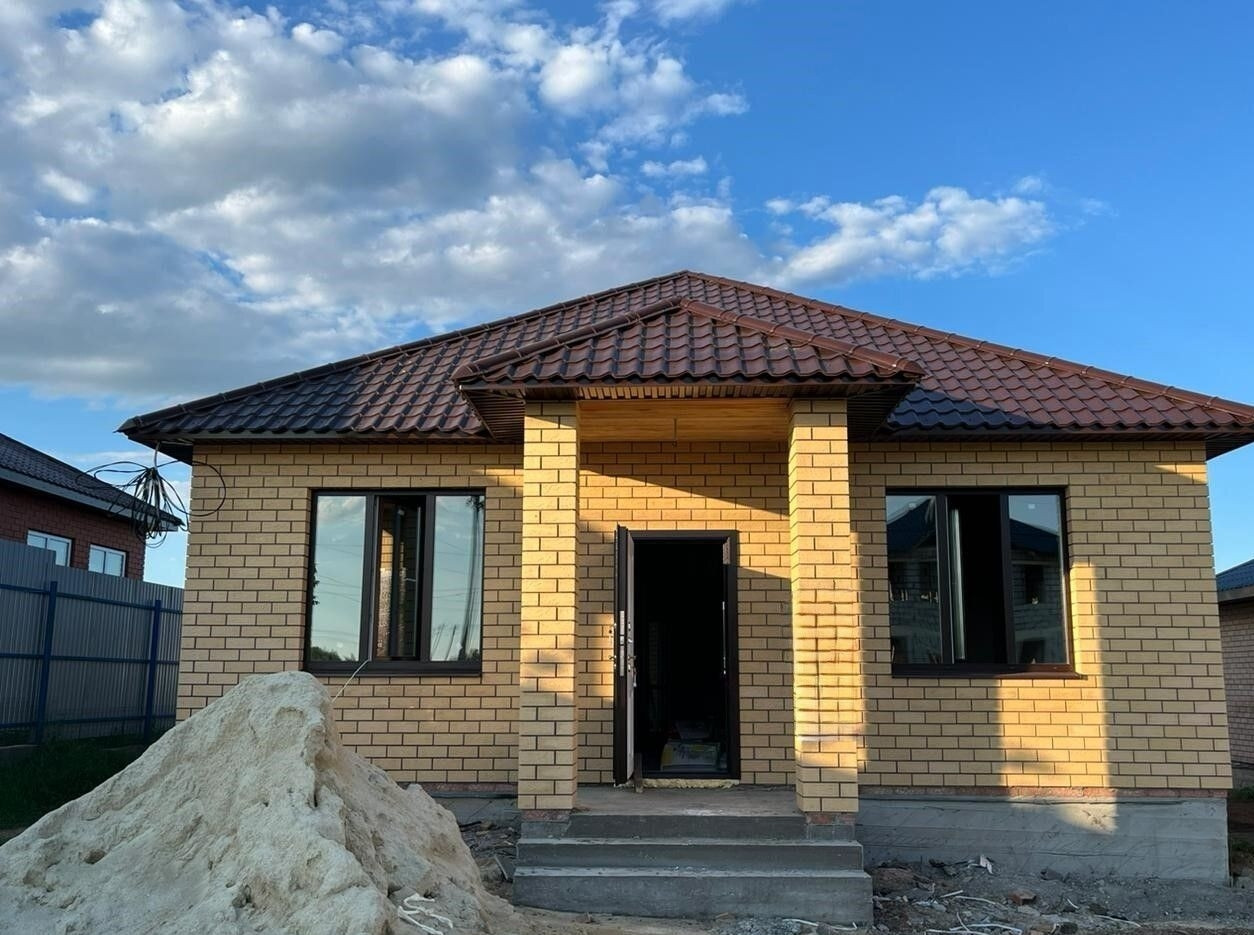 -✅ Дом построен из качественных материалов: Фундамент свайно-ленточный. Стены из керамзитоблока, облицовка кирпич. Крыша из металлочерепицы. Кровля деревянно-стропильная система, с утеплением 20см, металлочерепица. В доме выполнена предчистовая отделка стены отшпаклеваны в финиш (готовы к поклейке обоев), разведена электрика по всему дому ГОСТ. Система теплый пол во всех помещениях с возможностью регулировки по контурам, двухконтурный газовый котел, хорошие пластиковые окна REHAU. Подключены все коммуникации (газ, свет, вода, канализация (септик 3 кольца - 4,5 куба).
