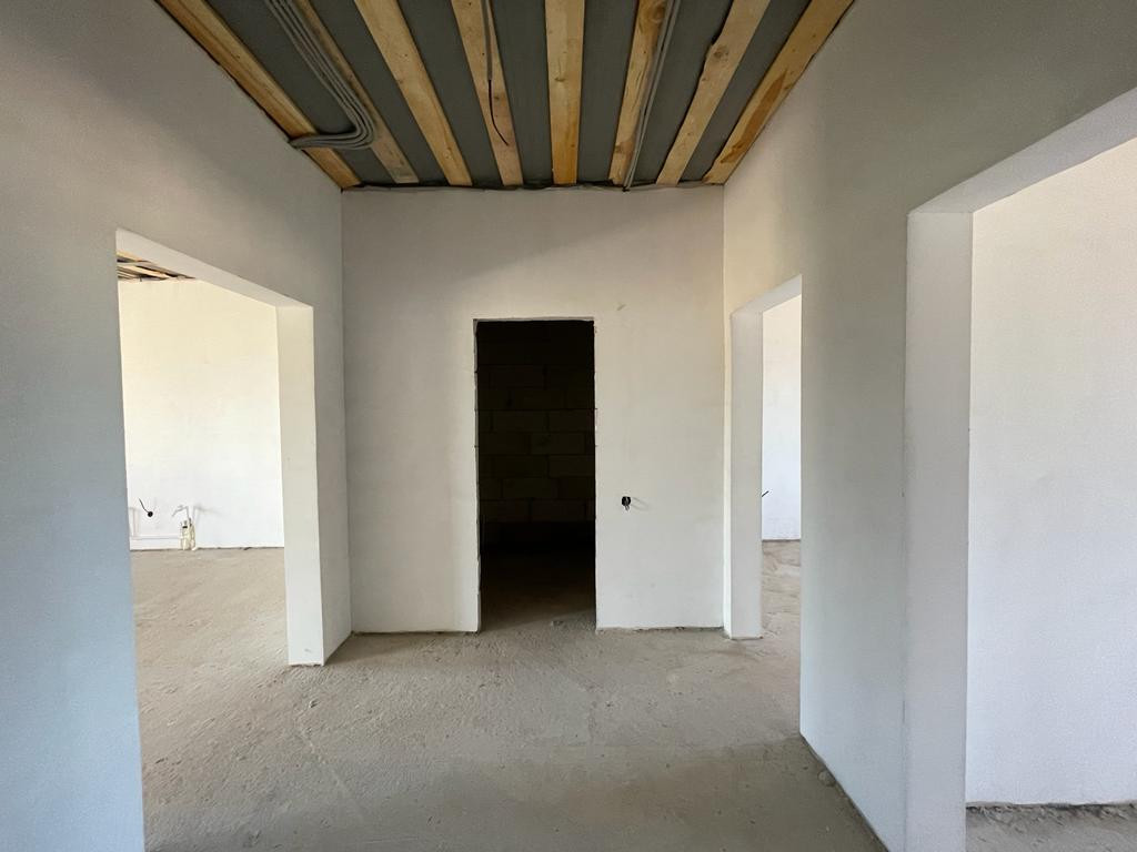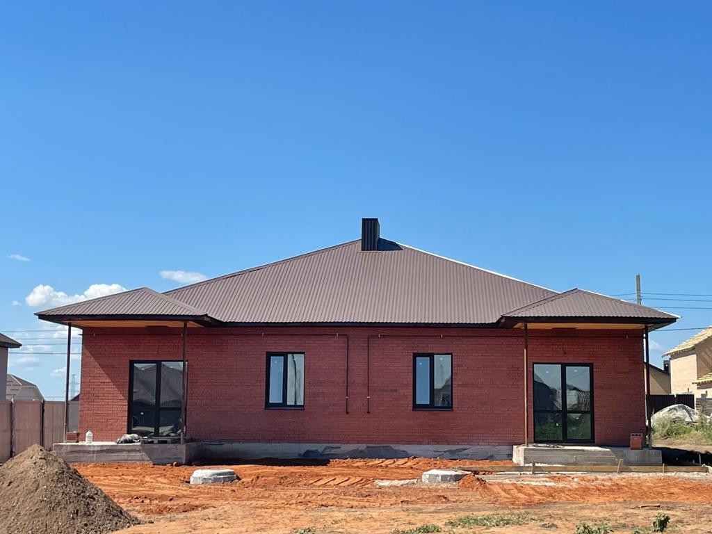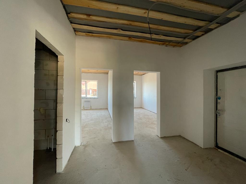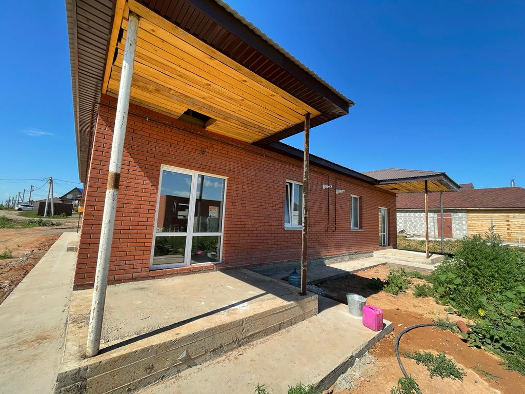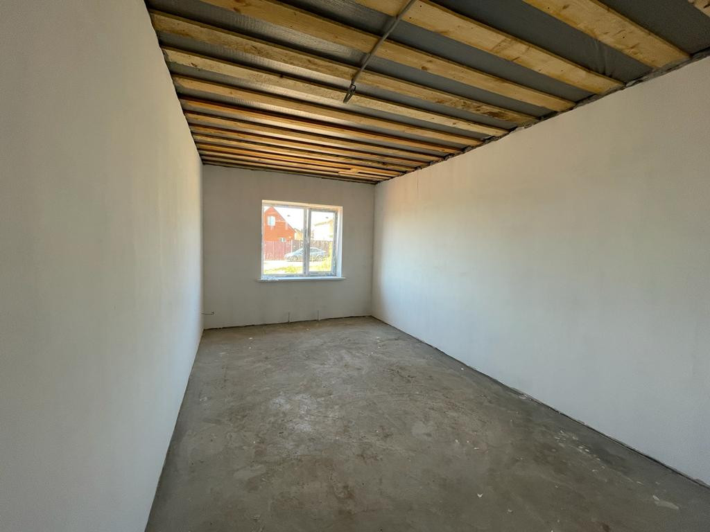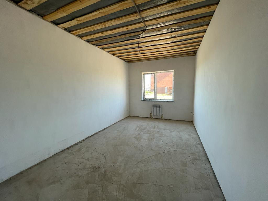 Дом построен из газаблока, облицован кирпичом. Внутри выполнена качественная предчистовая отделка – ровные полы, ошпаклеванные белые стены, разводка электричества по ГОСТУ, окна Rehau и хорошая входная дверь. По всему дому проложен теплый пол, установлены радиаторы, двухконтурный газовый котел.
