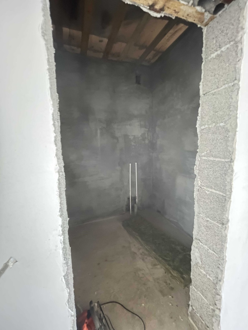 В сан узле и кухонной зоне разведены трубы под воду и слив, пробурена скажина на воду, установлен насос, гидроаккумулятор, реле, установлены колодезные крышки и люки, сливная яма в три кольца.