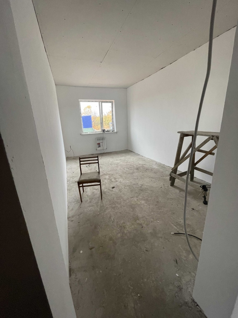 В жилом доме произведена пред чистовая отделка: штукатурка стен, шпаклевка стен, стяжка пола в 2 слоя, теплый пол полностью по всему дому, установлены розетки и выключатели, входная металлическая дверь, установлены пластиковые окна, подоконники и откосы. Произведен полный монтаж электрической разводки. Потолок подшит фольгоизолом. Потолок утеплен минеральной ватой в 4 слоя по 5 см.