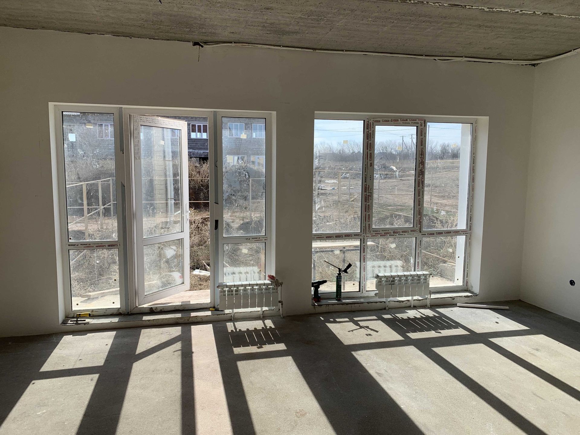 Отделка предчистовая (стены отштукатурены, откосы), установлены радиаторы отопления, газовый котел, теплый пол на первом этаже.