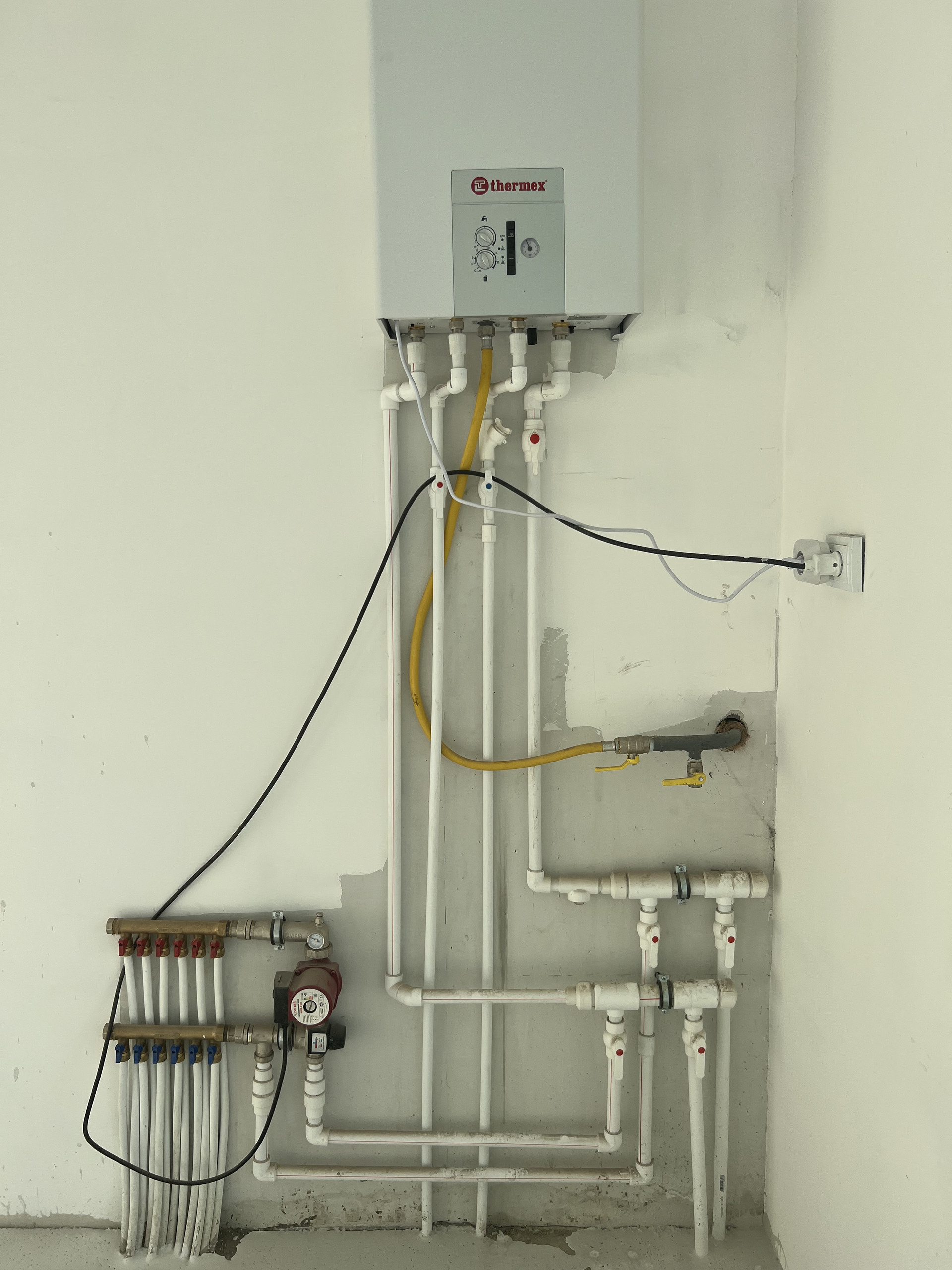 ОТДЕЛКА предчистовая: штукатурка стен, Стяжка пола, полностью смонтирована система отопления, теплый пол на 1 этаже, каркас лестницы, поставим радиаторы отопления, газовый котел.