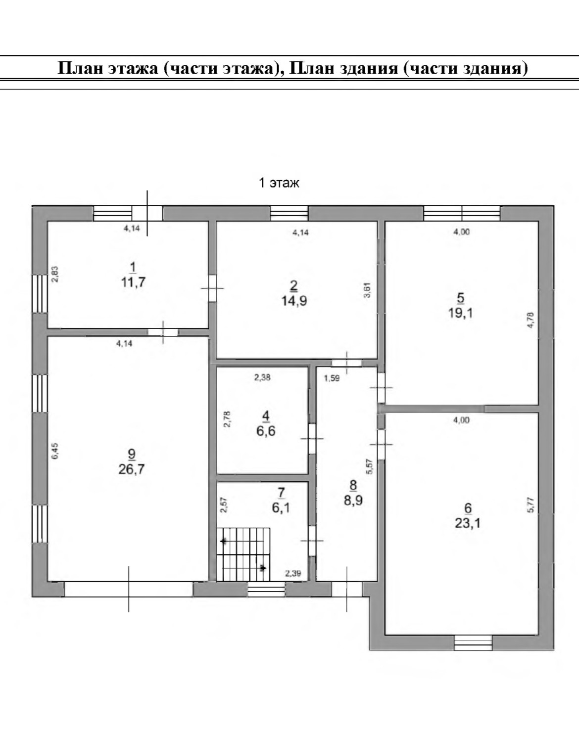 ПЛАНИРОВКА: На первом этаже прихожая, погреб, кухня 14,9 кв.м., жилая комната 19 кв.м., жилая комната 23 кв.м., гараж 26 кв.м., сан. узел 6,6 кв.м, котельная-11,7 кв.м. с выходом на террасу.