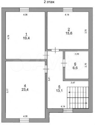 На втором этаже три спальни 23,4 кв.м, 19,4 кв.м., 15,6 кв.м., сан/узел 6,6 кв.м.