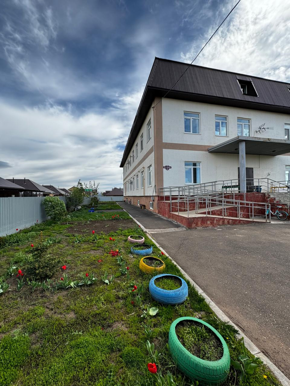 Во дворе своя детская площадка и есть земля, где можно посадить маленький огородик или цветы.
