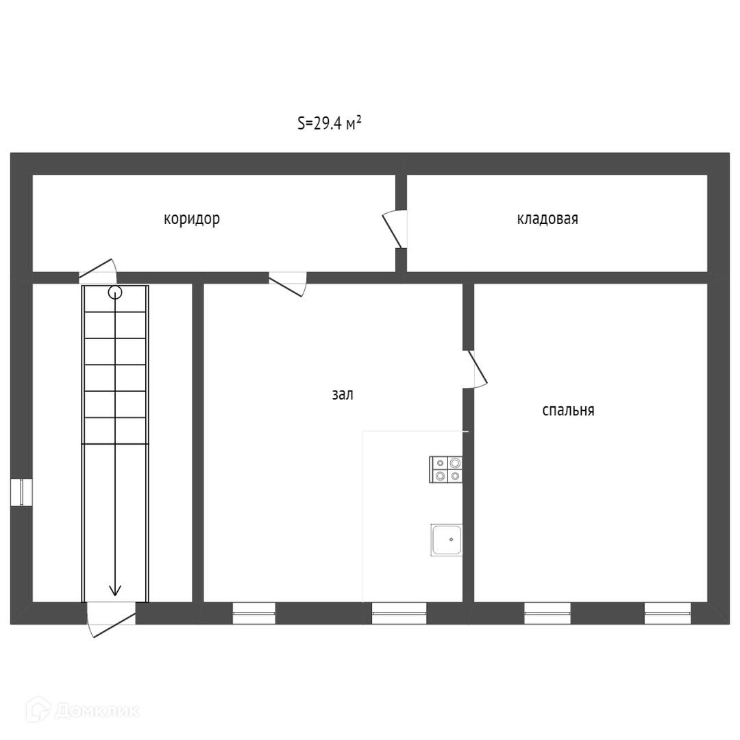 Общая площадь 29.4 м2