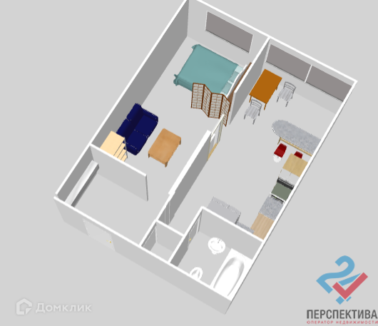 Общая площадь 34.6 м2