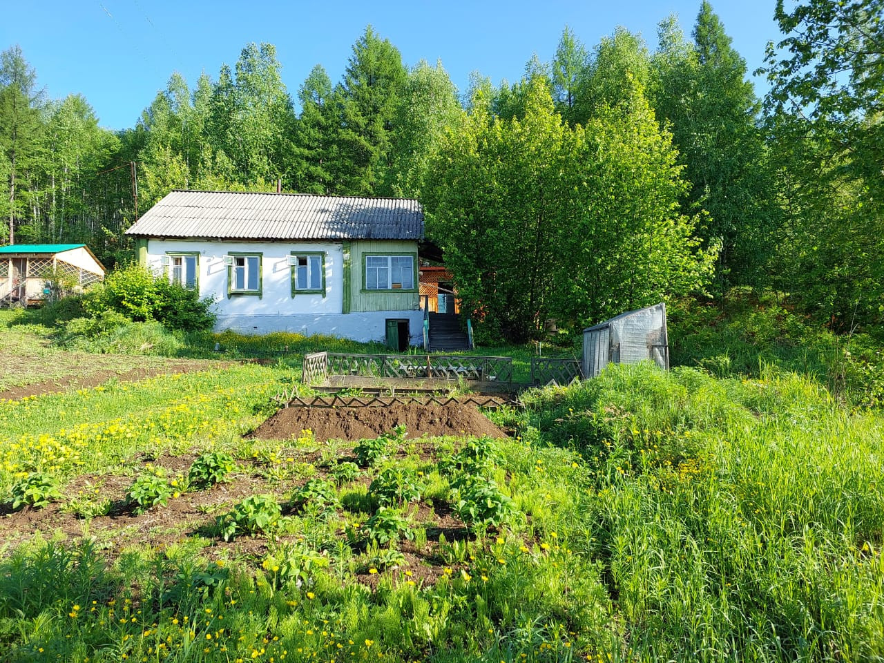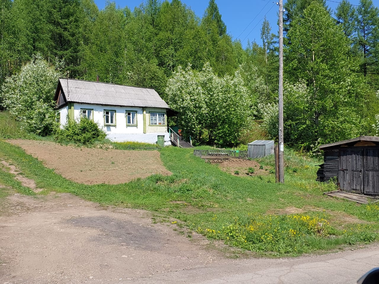 Дом на возвышенности, вид на поселок, рядом остановка общественного транспорта, магазин через дорогу. Участок захватывает лесной массив. Земля в собственности. Межевание выполнено. На территории беседка, гараж, место для парковки, территория под посадки. В доме 3 комнаты с мебелью, кухня, прихожая. Печное отопление, электричество, возможность подключения центрального отопления и водоснабжения. Звоните