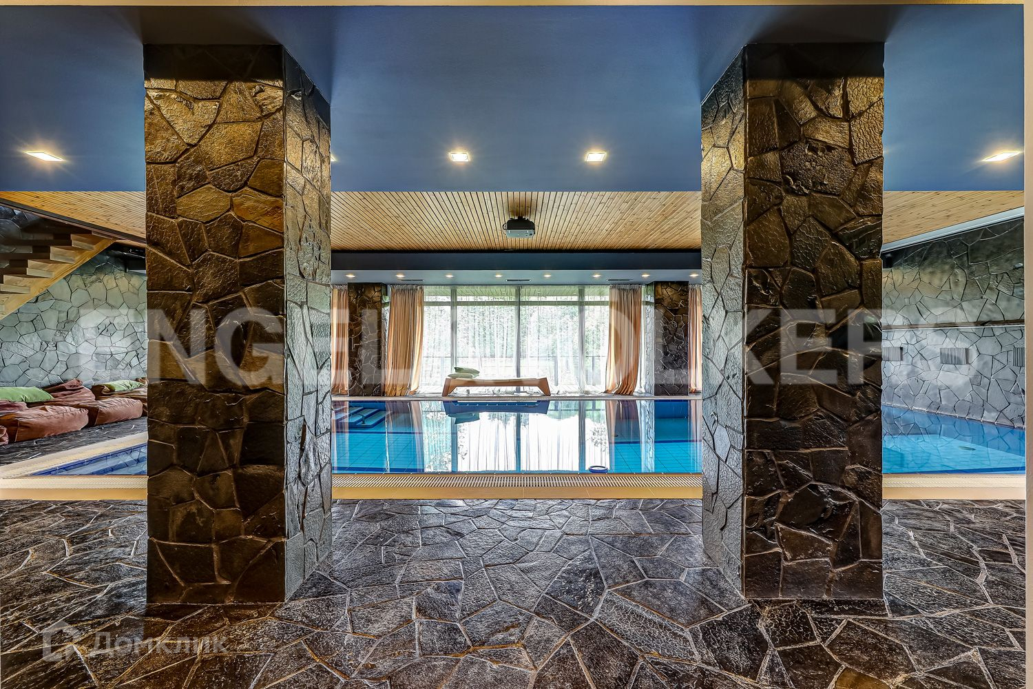 Прямо у реки расположился двухэтажный SPA-комплекс с бассейном, Русской и Турецкой парной на 1-м этаже и просторной гостиной с зоной кухни и столовой для приема гостей, а так же спальней с выходом на видовую террасу и ванной комнатой.
