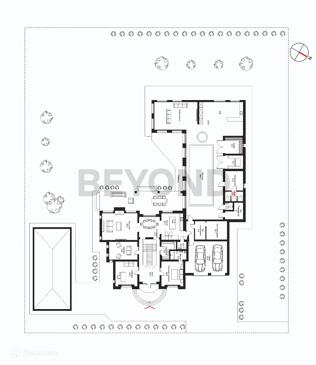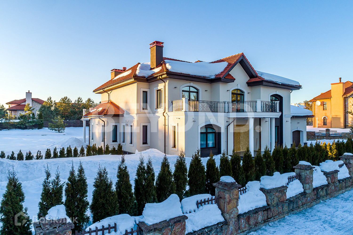 Предлагается к продаже современный загородный дом площадью 1019 кв. м на живописном благоустроенном участке площадью 32 сотки , расположенный в клубном поселке «Репинские усадьбы». Архитектурные решения в поселке гармонично вписаны в окружающую среду и представляют собой единую концепцию, проходящую через 1-ю и 2-ю очередь «Репинских усадеб». При этом каждый дом построен по индивидуальному проекту и не имеет аналогов в локации. Резиденция распложена в окружении хвойного лесного массива, а в 50 метрах протекает река Сестра. На территории участка расположен основной дом и дом охраны. Первый этаж дома разделен на SPA-зону с бассейном, зоной отдыха, финской сауной и турецкой парной, зоной отдыха с выходом на живописный участок, помывочной. При входе в дом расположился просторный холл с стильной лестницей, ведущей на 2-й этаж дома, функциональный кабинет, гостевая спальня, кинозал и гардеробная комната, далее просторная гостиная с камином, столовая зона и зона кухни. Приватный 2-й этаж дома представлен просторным хозяйским спальным блоком с собственной ванной и гардеробной комнатой, двумя детскими блоками с собственными ванными комнатами и игровой, дополнительной спальней с ванной, и зоной отдыха с выходом на просторную эксплуатируемую кровлю и террасу.