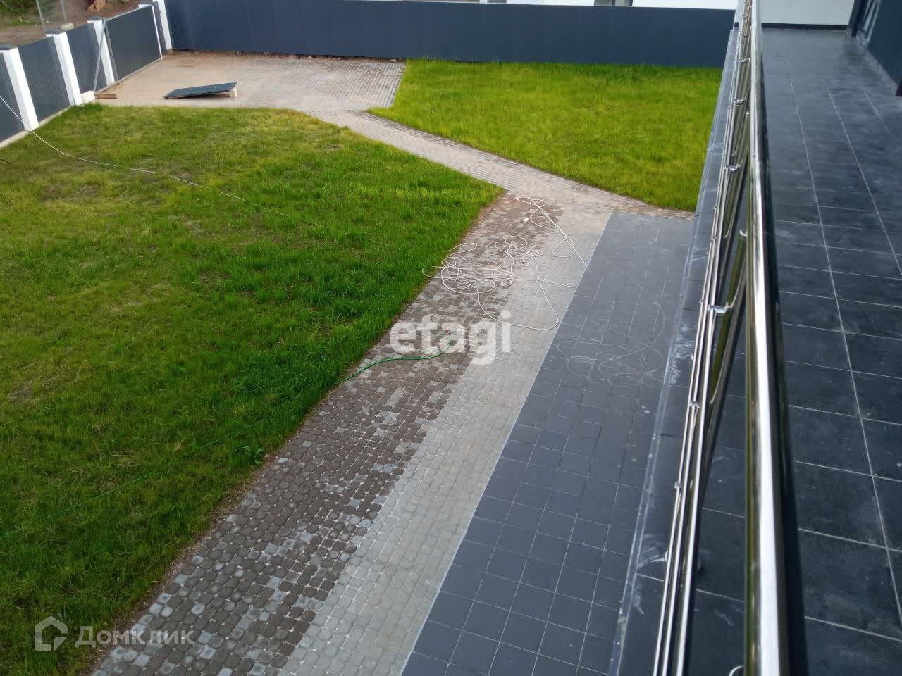 Участок 10.5 соток с газоном и тротуарной плиткой.