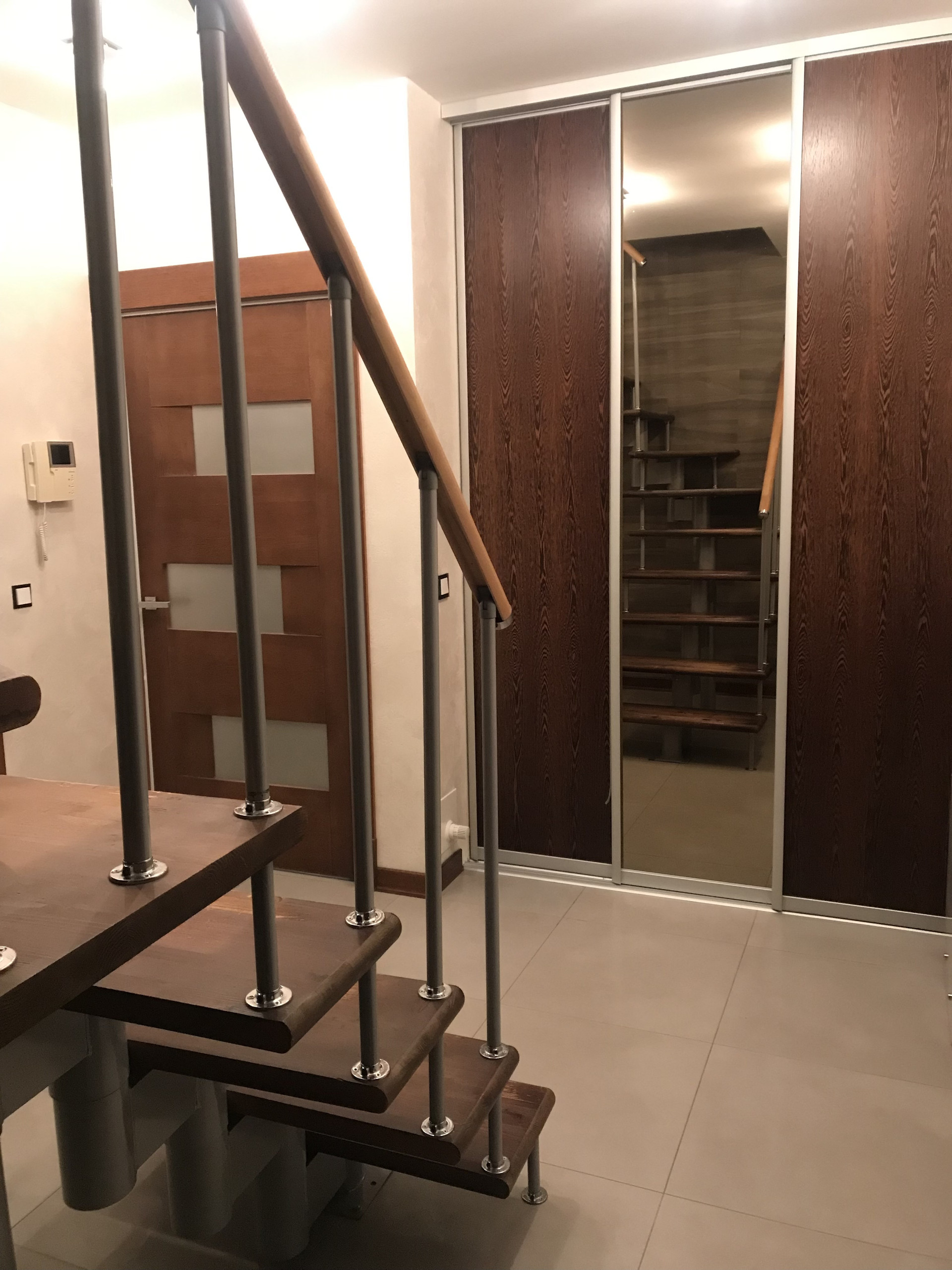 Везде продумано освещение разной яркости. Свет весь на проходных переключателях: это значит, что вам не надо спускаться по лестнице, чтобы выключить свет внизу, и уходя из дома можно выключить все лампы в доме прямо у входной двери.