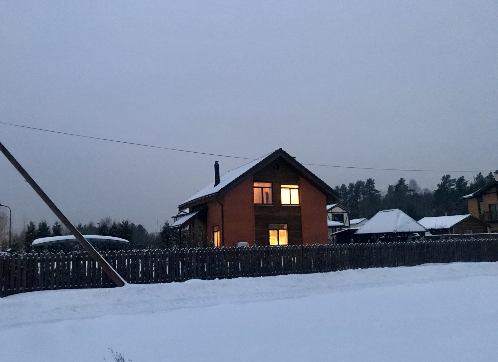 Дом построен в особом коттеджном посёлке. Здесь приятная охрана и руководство, магистральный газ и центральная канализация. Приятное преимущество — это то, что здесь не нужно фильтров, у нас чистейшая питьевая вода из общей скважины, сделанной только для Парквэя. Кстати, давление в водопроводе у нас тоже прекрасное. А самая главная фича — это то, что создатели изначально перевели ИЖС в ДНП, с той целью, чтобы никто не мог нарушить общий архитектурный план. Этим планом запрещены большие дворцы и высокие заборы, деревянные дома, и времянки. Так же в нашем посёлке точно не получится сдавать коттедж посуточно или построить автосервис.