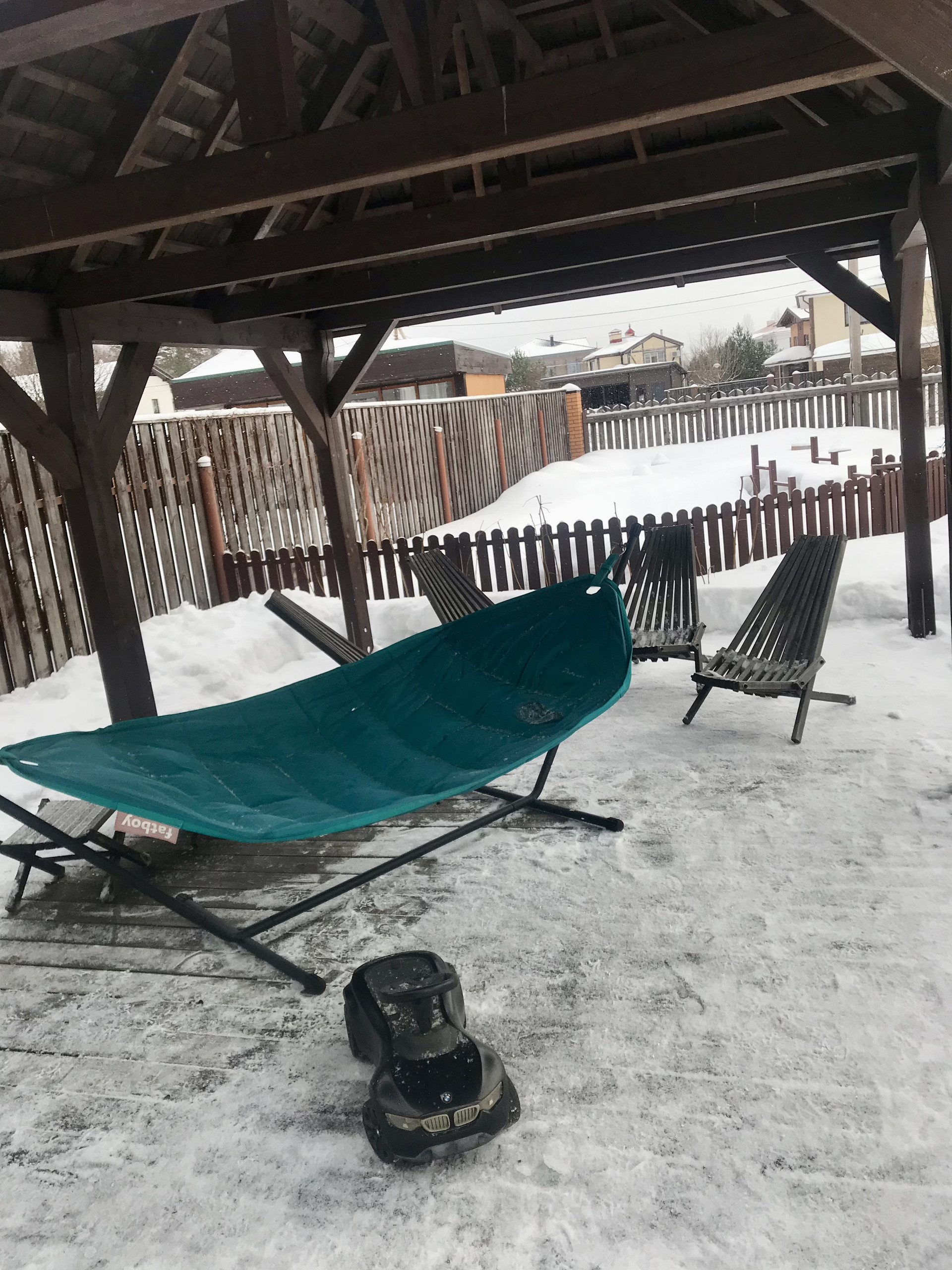 Улучшения участка стоили примерно 10 миллионов. Здесь есть навес для двух машин, живая изгородь, зона отдыха с беседкой и гамаком, и японский пруд с водопадом. В пруду у нас много лет жили карпы кои. Перед отъездом мы отдали их в добрые руки, но ничего не помешает вам завести новых: всё оборудование и коммуникации для их содержания исправно работают.