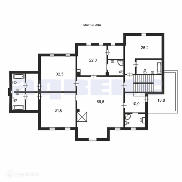Мансарда: комната мальчика с санузлом, комната девочки с санузлом, игровой холл, комната няни с санузлом, гостевая комната с санузлом, два дополнительных помещения