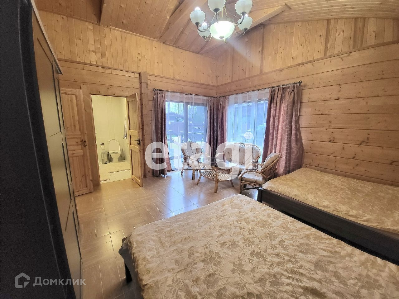 Гостевой Дом площадью 104 кв. метра так же оборудован террасой с выходом к костровой зоне. Дом состоит из просторной кухни-гостиной и двух спален с раздельными сан. узлами.