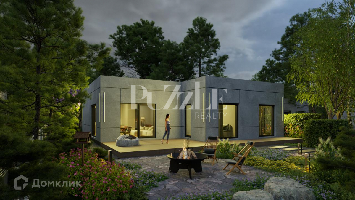 Продуманная и удобная планировка предполагает наличие мастер-спальни (14,5 м2) со своим с/у (4 м2) и гардеробной (3,5 м2), просторной детской комнаты (13 м2) с гардеробной (3,5 м2) и ванной комнатой (4,7 м2), гостевой спальней (13 м2), которую при необходимости можно адаптировать под кабинет. Предусмотрен гостевой с/у (5 м2), просторная прихожая (12,5 м2), помещение котельной с отдельным входом (5 м2). Панорамное остекление наполняет каждую комнату светом. Просторная кухня- гостиная (44 м2), имеет выход на террасу 15 м2, которую при желании можно легко увеличить.