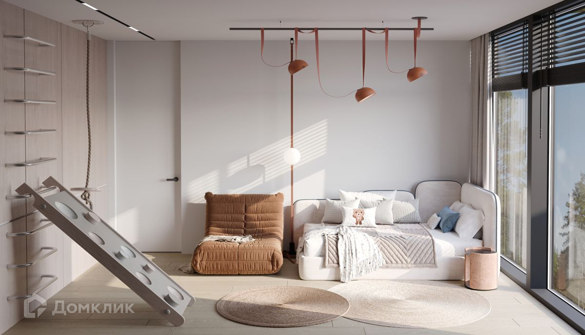 Планировкой дома предусмотрены: просторная гостиная с местом для камина, обеденной зоной и кухней общей площадью 30,13 м² — здесь же находится выход в уютное патио. Кабинет, место для хранения, хозяйственный блок с кухней, большой холл, гостевой санузел. Мастер-спальня с ванной комнатой, гардеробной и выходом на лоджию. Две изолированные спальни — одна из них также с выходом на лоджию, санузел с душевой. Площадь спален — от 12,25 до 16,45 м².
