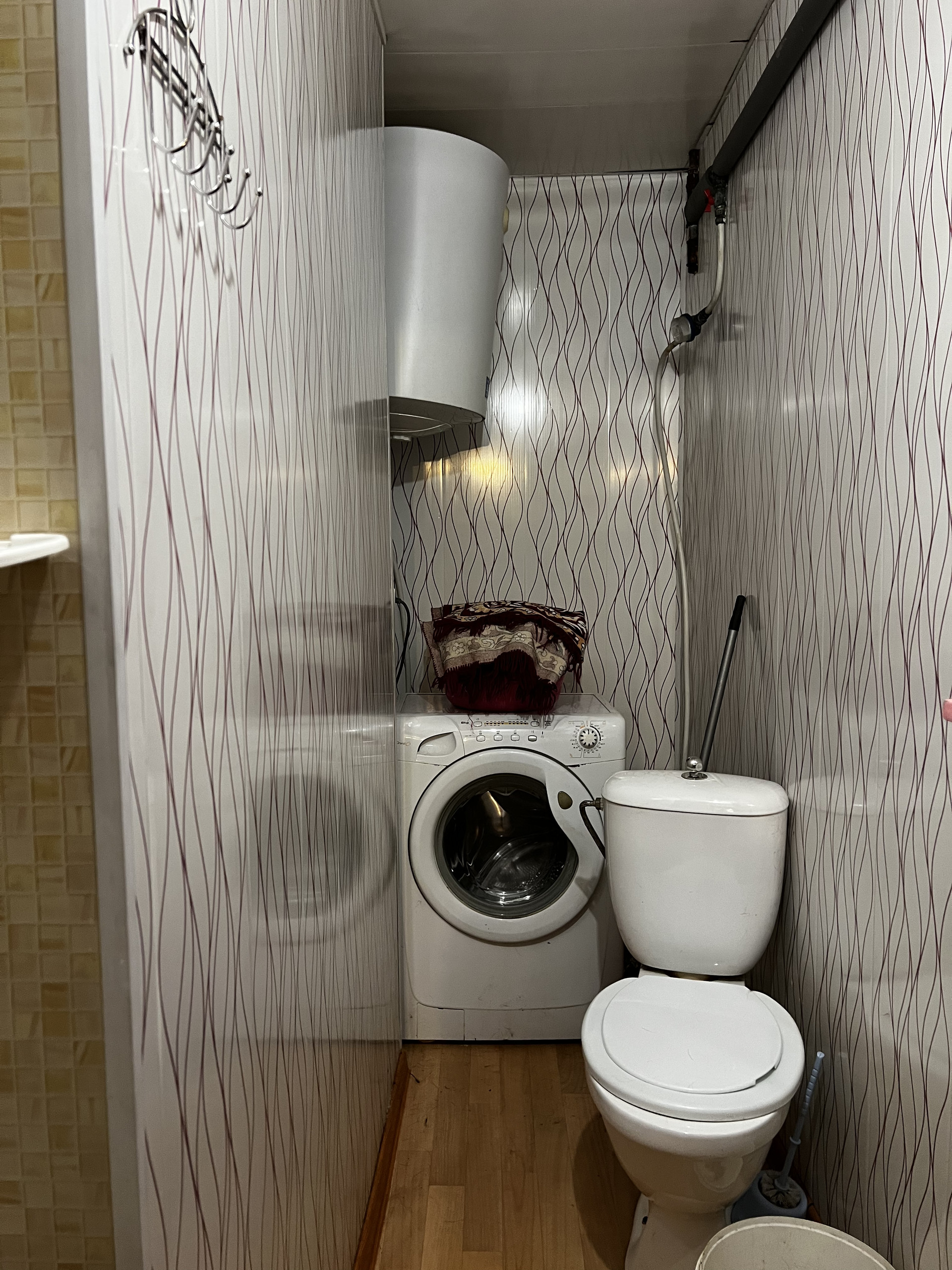 Центральное отопление, холодная вода, канализация. Установлен водонагреватель.